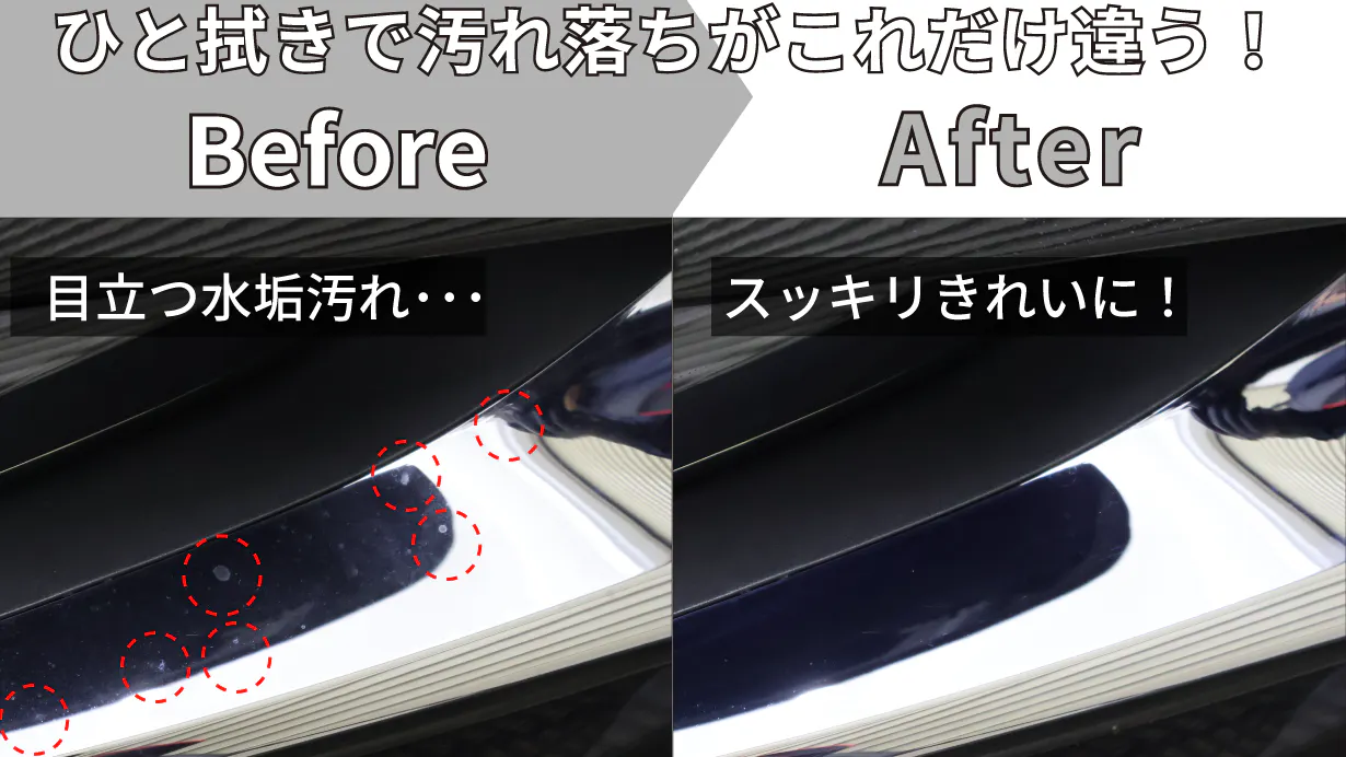 あとは浮かび上がった汚れをマイクロファイバークロスで拭き取るだけ。