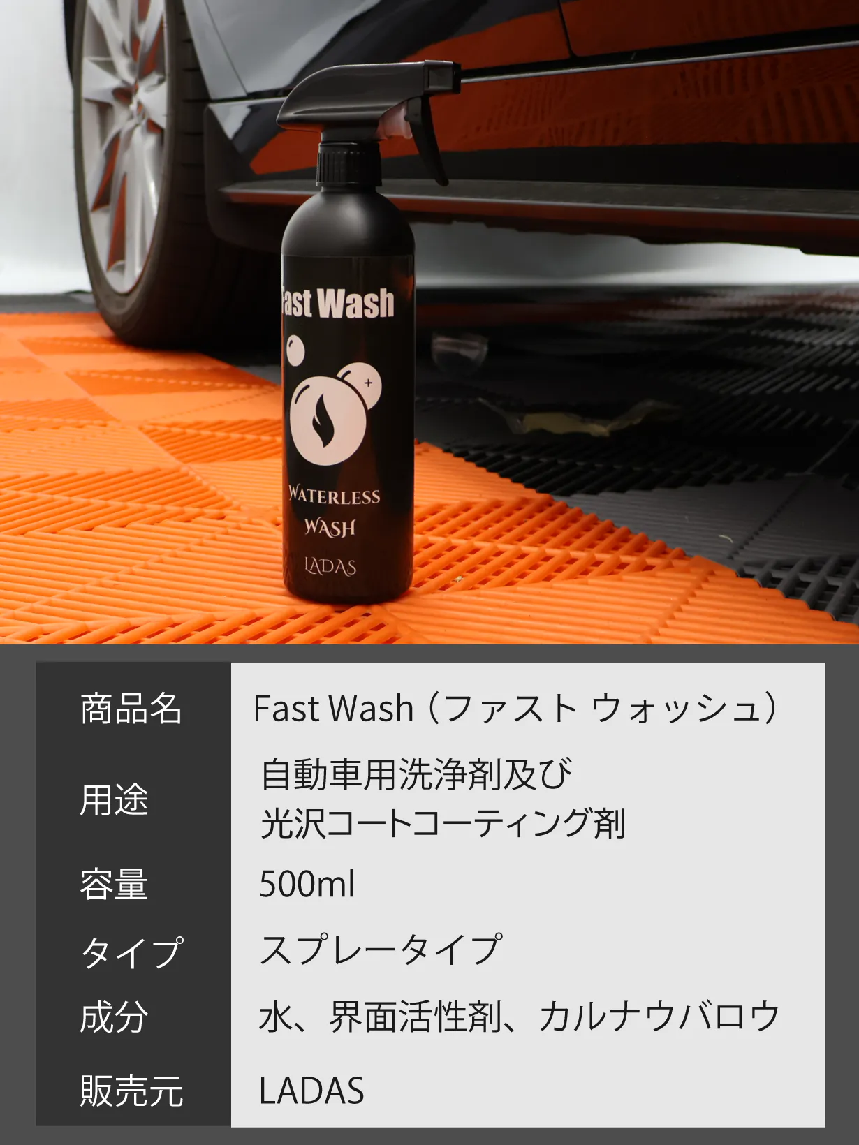 それもそのはず。Fast Washは車用の高級ワックスに使用する「カルナウバロウ」を配合しています。