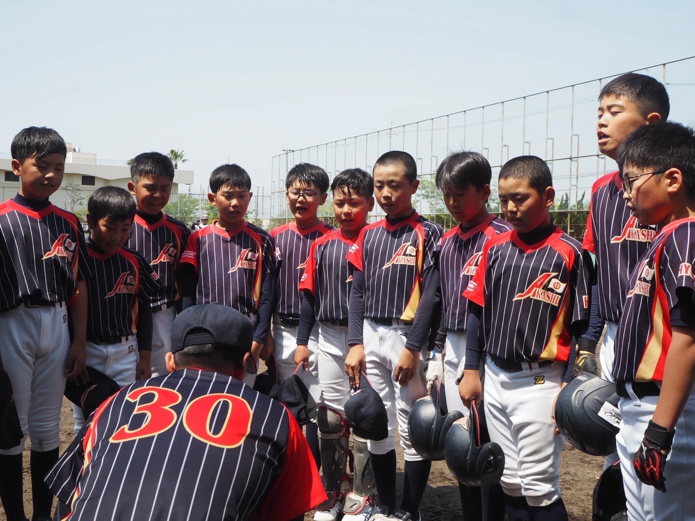 明石ボーイズJrは礼儀作法や挨拶だけでなく、道具や仲間との絆を大切にする健全な子供たちの育成を指導理念としています 。