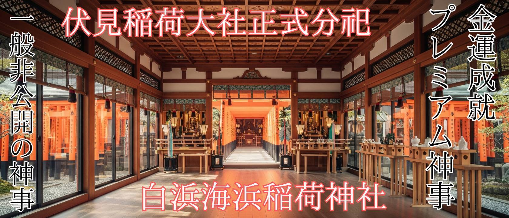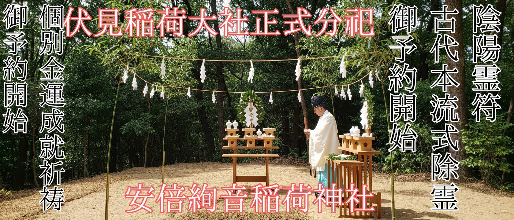 正式に御神祭を分祀された内宮施設であり、設立名を「白浜海浜稲荷神社」、分祀名を「安倍絢音稲荷神社」として外部からの穢れを断ち、本来の神事を護る聖域です。