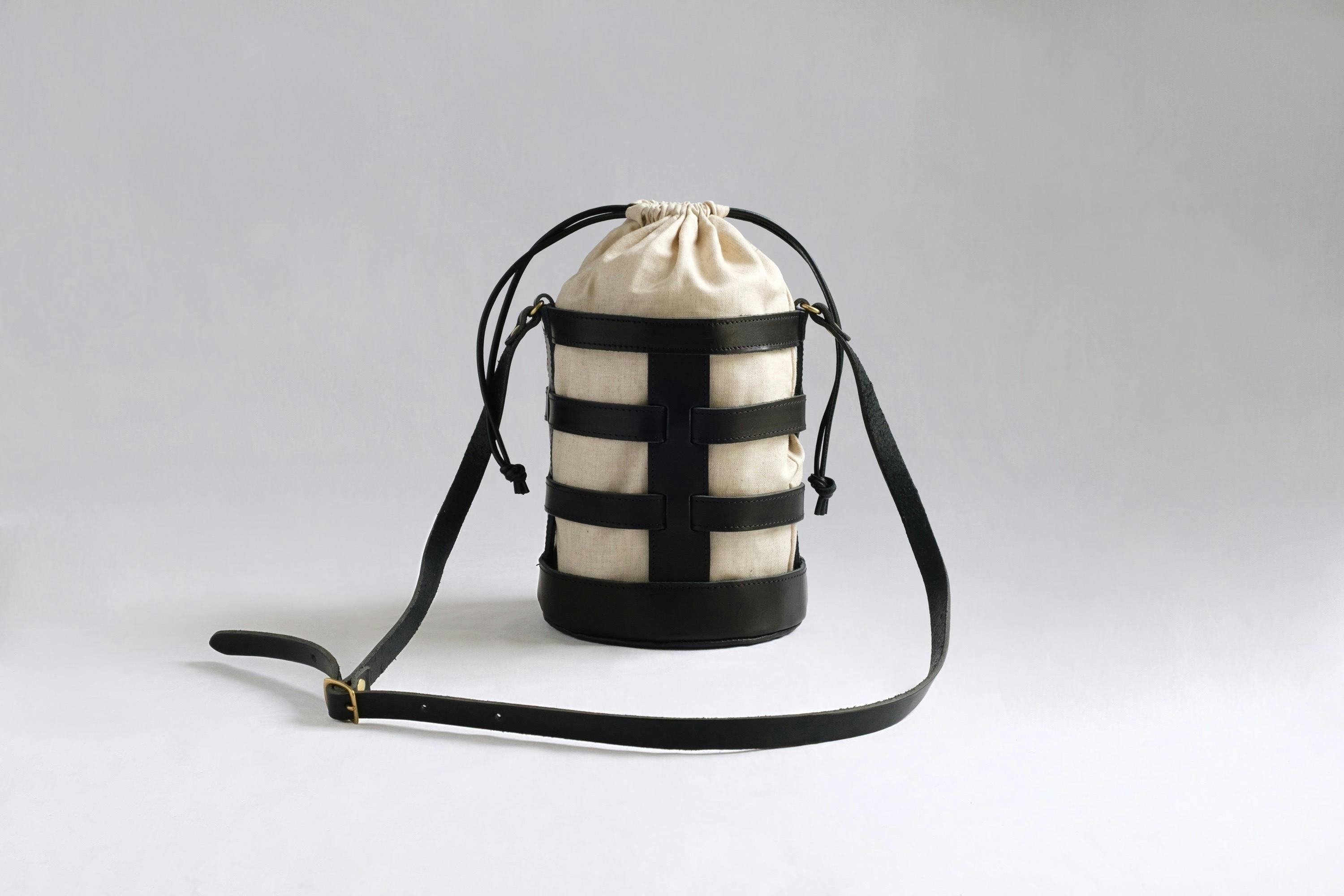 内袋には綿麻ヘリンボンの巾着を合わせ、