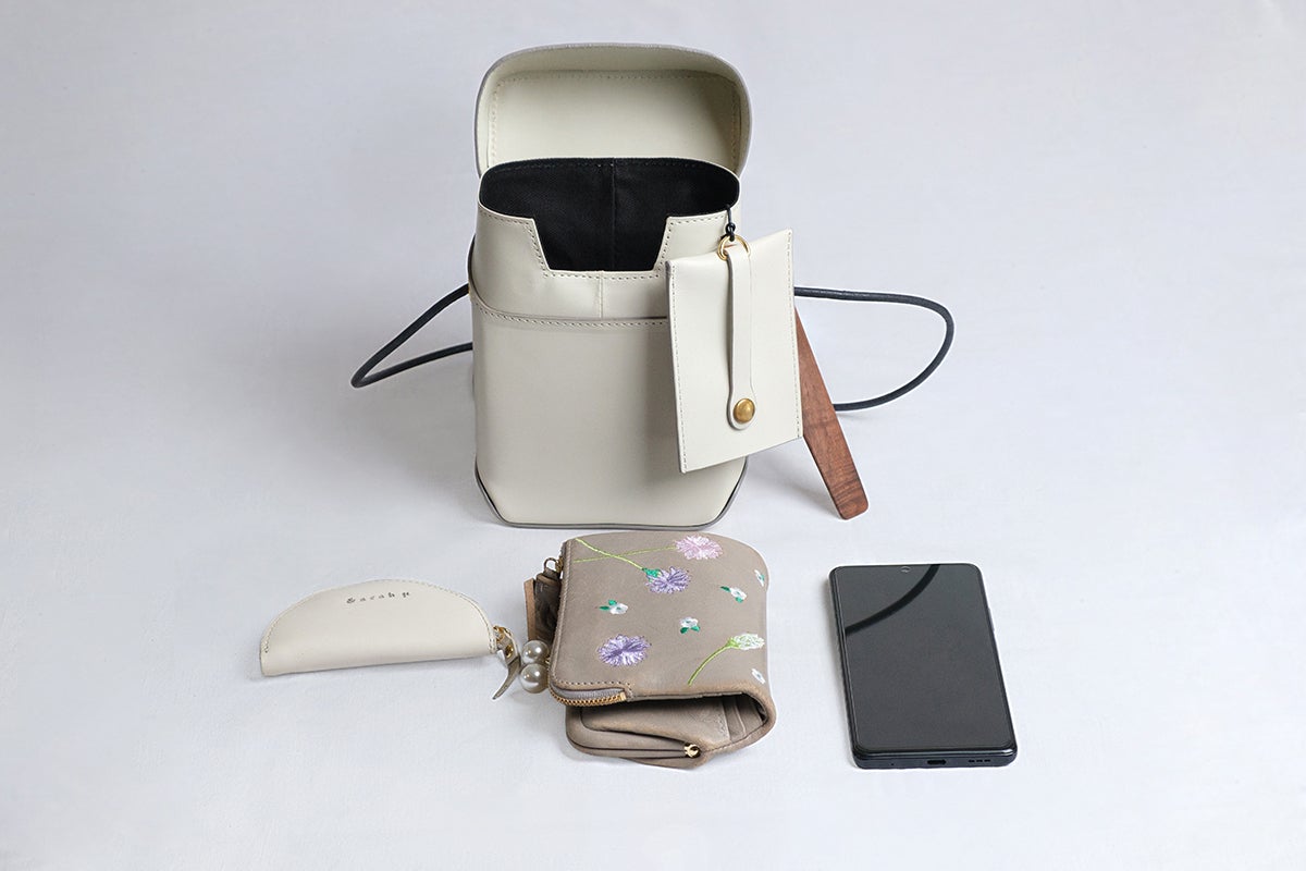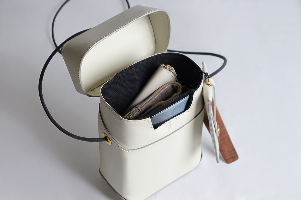 表地 : 白ヌメ革 裏地 : 綿麻ヘリンボン