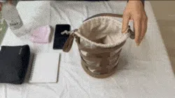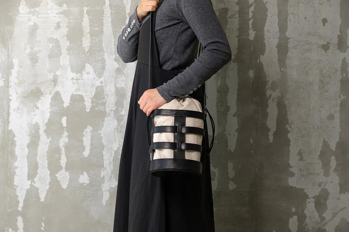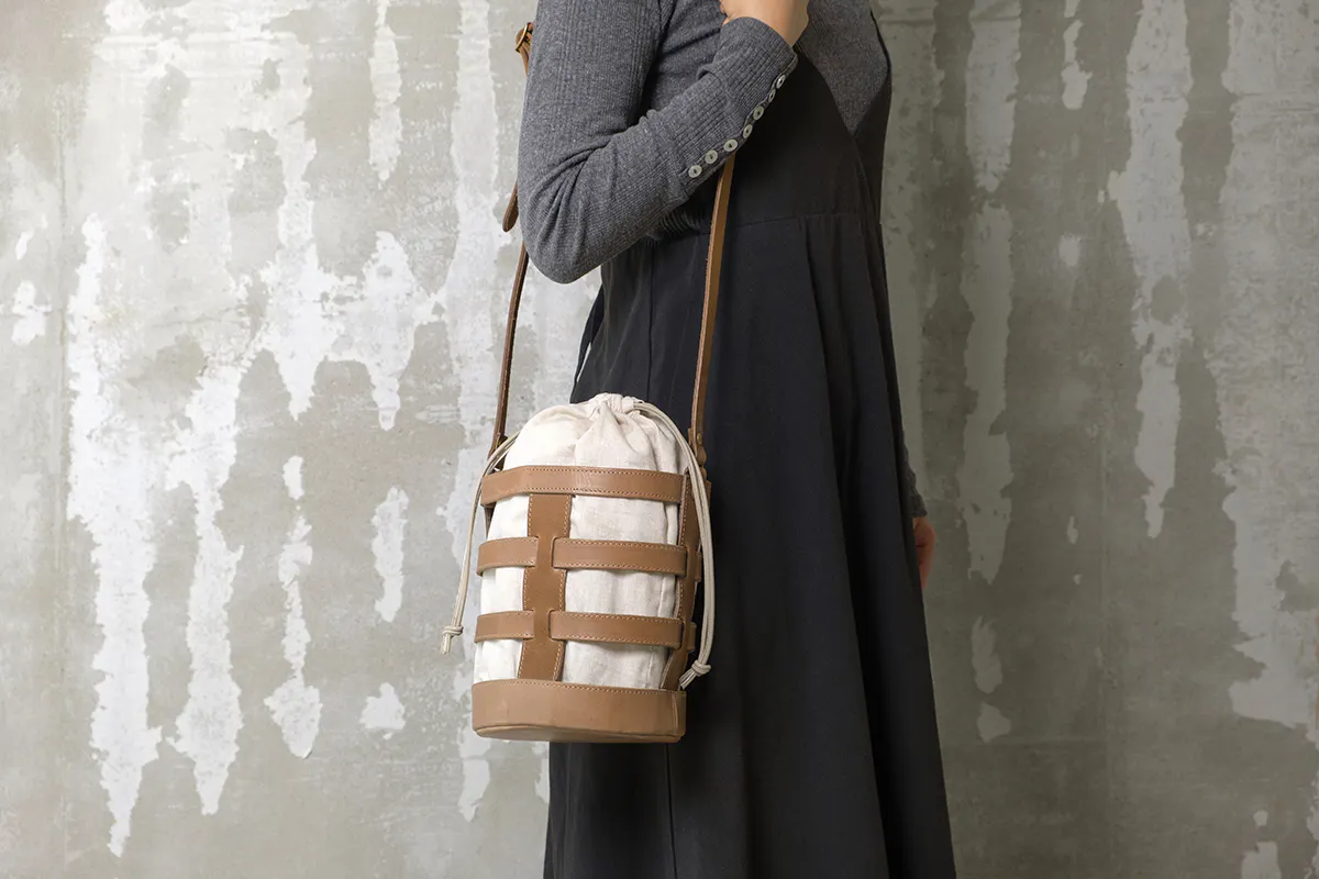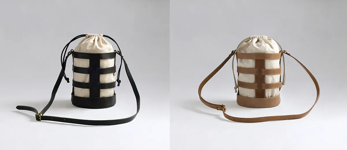 内袋には綿麻ヘリンボンの巾着を合わせ、