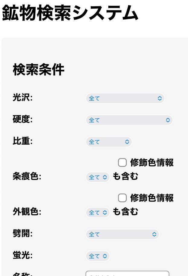 付録の鉱物検索システムでは、ほとんどの国産鉱物について検索できます!