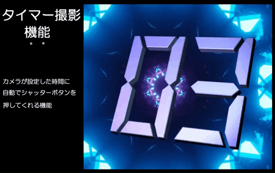 3秒10秒15秒20秒30秒事に時間設定してシャッターが自動に撮影してくれます。FIXCUS W2は前面にモニターがあるので集合写真には最高のパフォーマンスを発揮してくれます。
