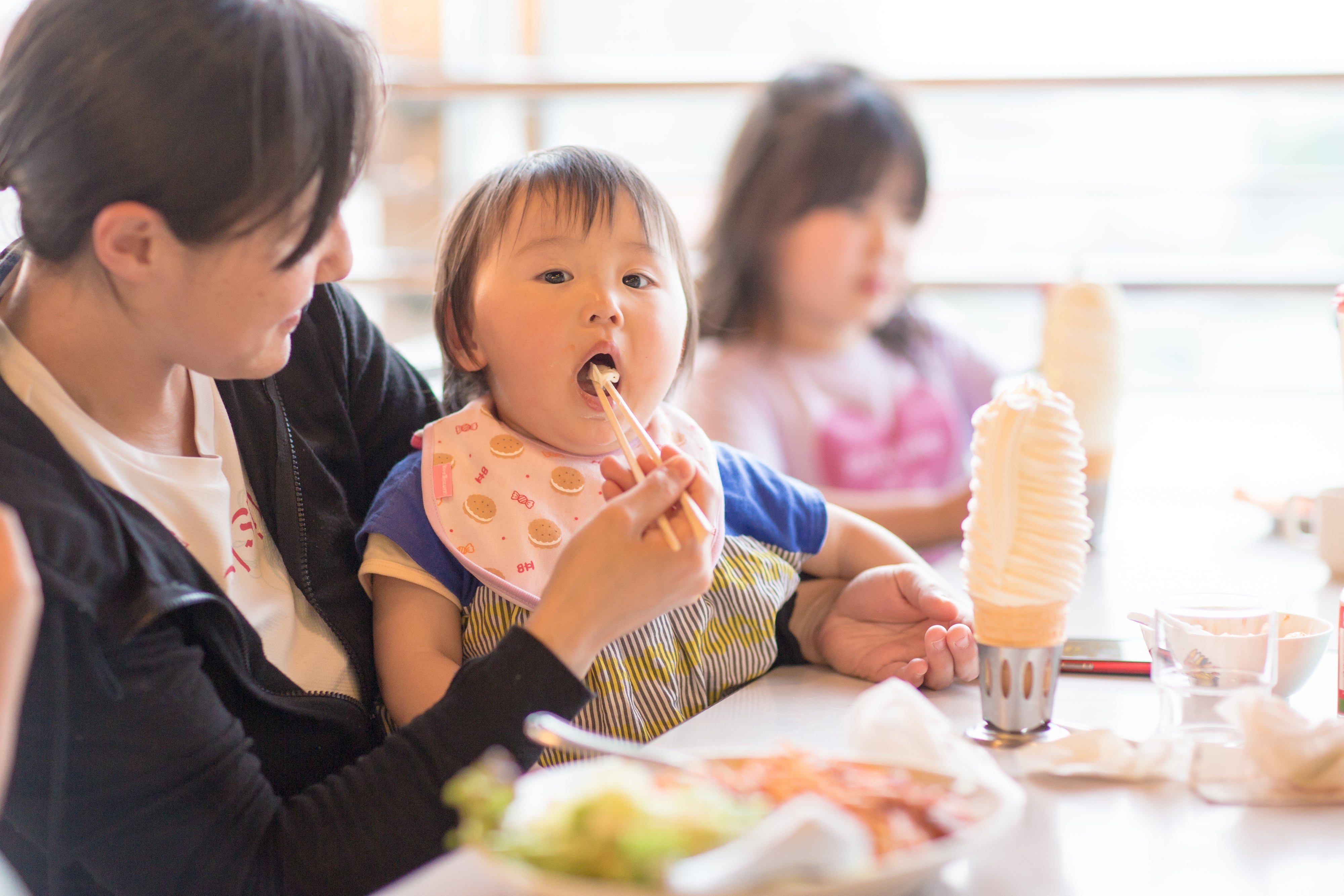 【ソフトクリームを割り箸で食べている様子】