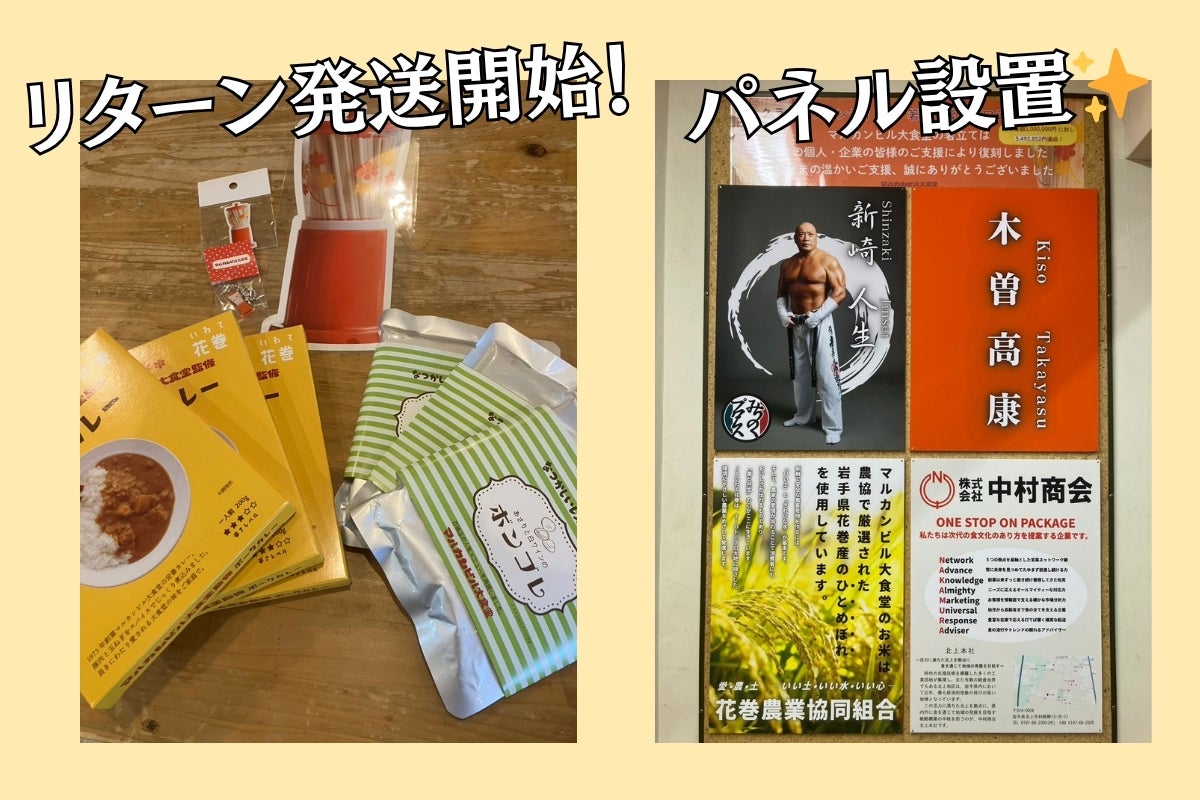 2026/04/02 17:30いつもありがとうございます。マルカンビル大食堂です。4月2日、花巻では季節外れの"みぞれ"が降りました。今年はなかなか暖かくならないな……と思うのもつかの間、週末の最高気温はなんと20度!体調管理には気を付けていきたいものです。そんな悪天候の中でも、マルカンビル大食堂は大賑わい。春休み期間ということもあり、毎日多くのお客様にお越しいただいております。本当にありがとうございます。さて、箸立て復刻プロジェクトでは、一部リターン品の発送と、個人・企業スポンサーの皆様の企業広告卓上POPおよび館内パネルの設置を行いました!今回発送いたしましたのは、・オリジナルグッズ3種・グッズ3種&ソフト券5枚・グッズ3種&カレー3食+ボンゴレ3食をお選びいただいた方へのリターン品です。お手元に届くまで、ぜひ楽しみにお待ちいただけますと幸いです!「箸立て」および「シリアルナンバー入り箸立て」を含むリターン品につきましては、パートナーでありますスワニー社にて、予定通り鋭意製造中です。マルカンビル大食堂のテーブルに並ぶ「箸立て」に先行し優先的に製造を進めていただいております。4月下旬には発送開始できる見込みですので、今しばらくお待ちくださいませ。6階レジ待機場所付近には、個人・企業スポンサー様へのリターンとしましてPOPパネルを設置いたしました。また大食堂の全125テーブルには企業スポンサー様へのリターンとしまして企業広告を設置いたしました。「箸立てのある風景」を一緒に守ってくださった皆様、本当にありがとうございます!マルカンビル大食堂にお越しの際は、ぜひご覧ください!新しい箸立てを迎える準備も着々と進んでおり、私達もドキドキ・ワクワク首を長くして待っております。「ソフトクリーム巻き体験」や「復刻記念パーティー」のリターン準備も順次進めております。ご支援いただいた皆様と直接お会いできることを、心より楽しみにしております。進捗につきましては、今後も活動報告にてお知らせしてまいります。新しい箸立ての完成とその後をどうぞ楽しみにお待ちください!マルカンビル大食堂 もっと見る