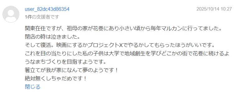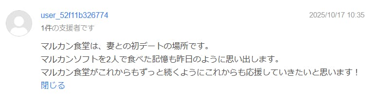 マルカンビル大食堂という場所が、皆様の思い出の一部分になっていることを改めて感じさせてもらえるような温かい応援メッセージを数々いただいております。