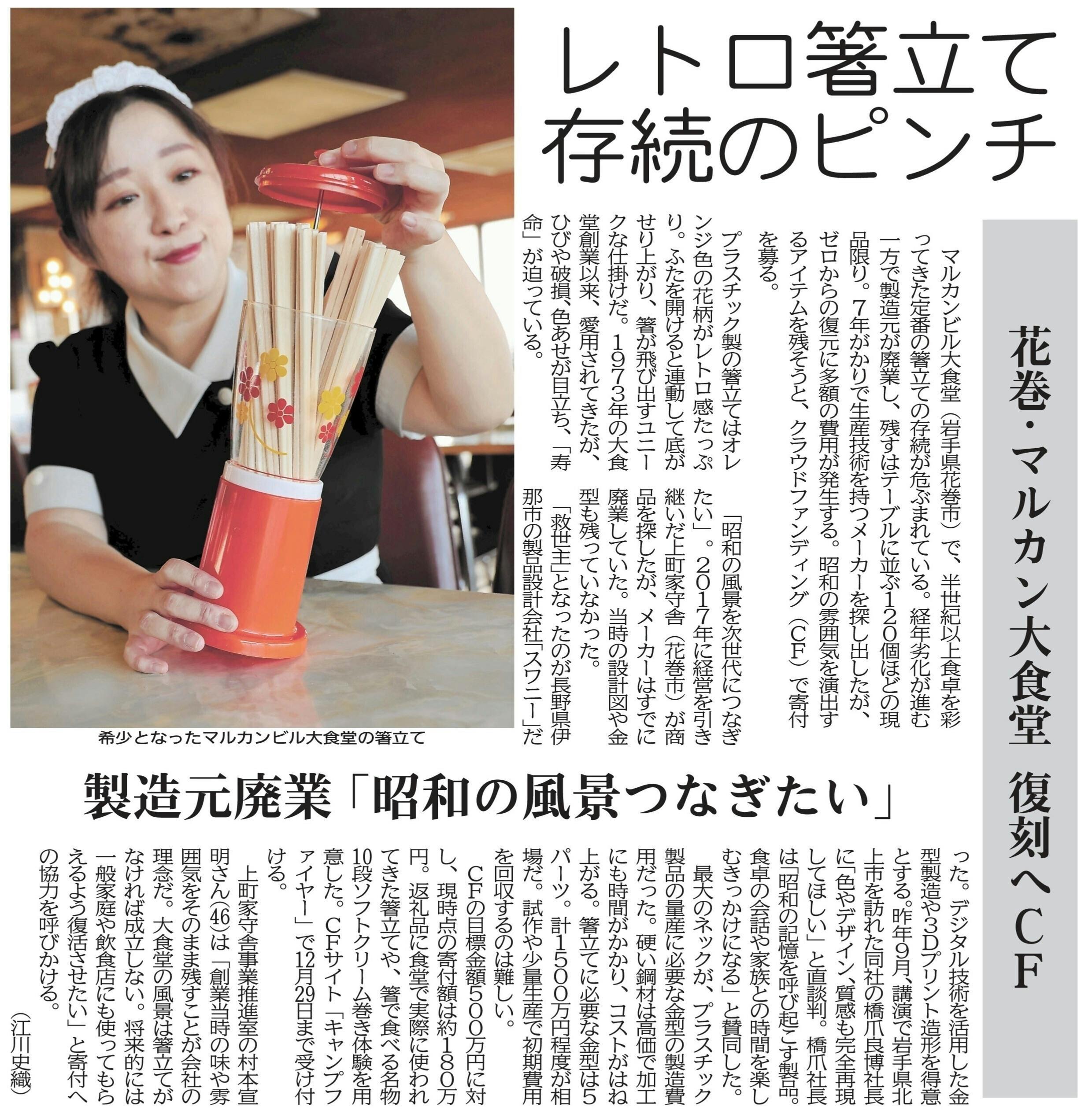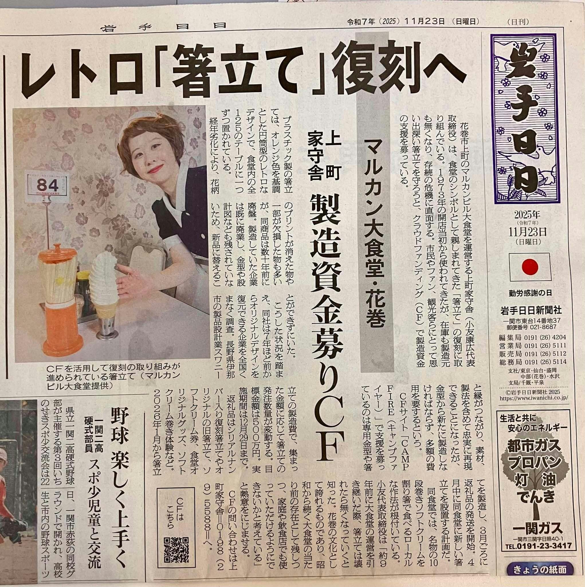 先日、地元の新聞社である岩手日日新聞社様、岩手日報社様、河北新報社様に当プロジェクトの記事を載せていただきました。
