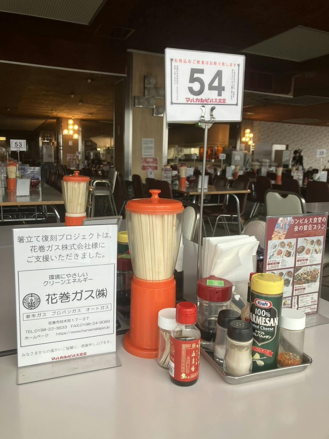 マルカンビル大食堂のテーブルに並ぶ「箸立て」に先行し優先的に製造を進めていただいております。