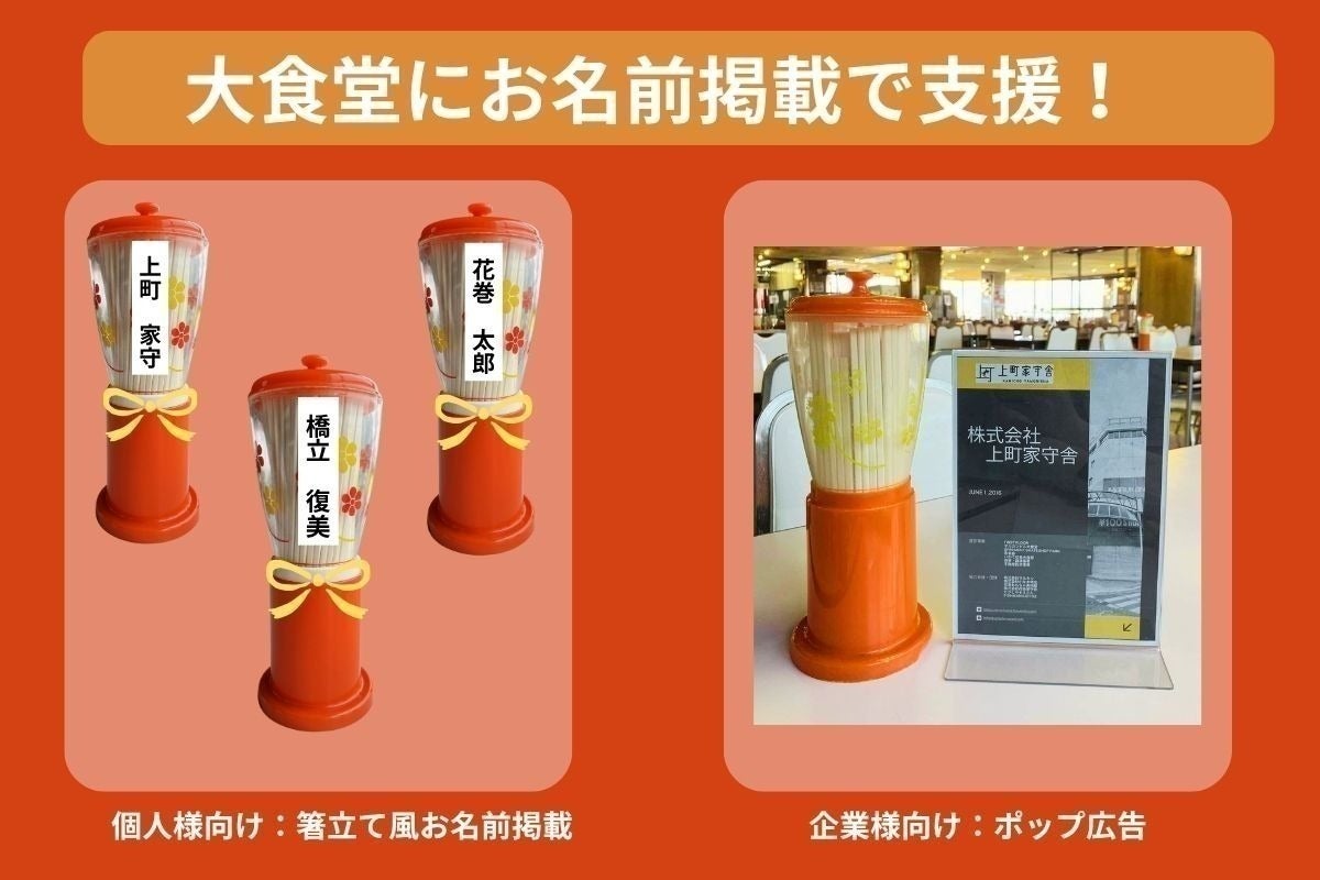 目標金額に達した場合は、大食堂の全テーブルに新しい箸立てを設置できるだけでなく、応援してくださった皆様のお手元に、全国の食卓に、飲食店様にお届けすることが可能になります。