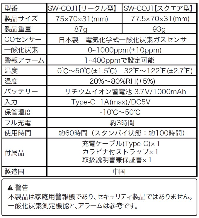 - ✅日本製センサー搭載!デザイン性と機能性を備えた万能一酸化炭素チェッカー!