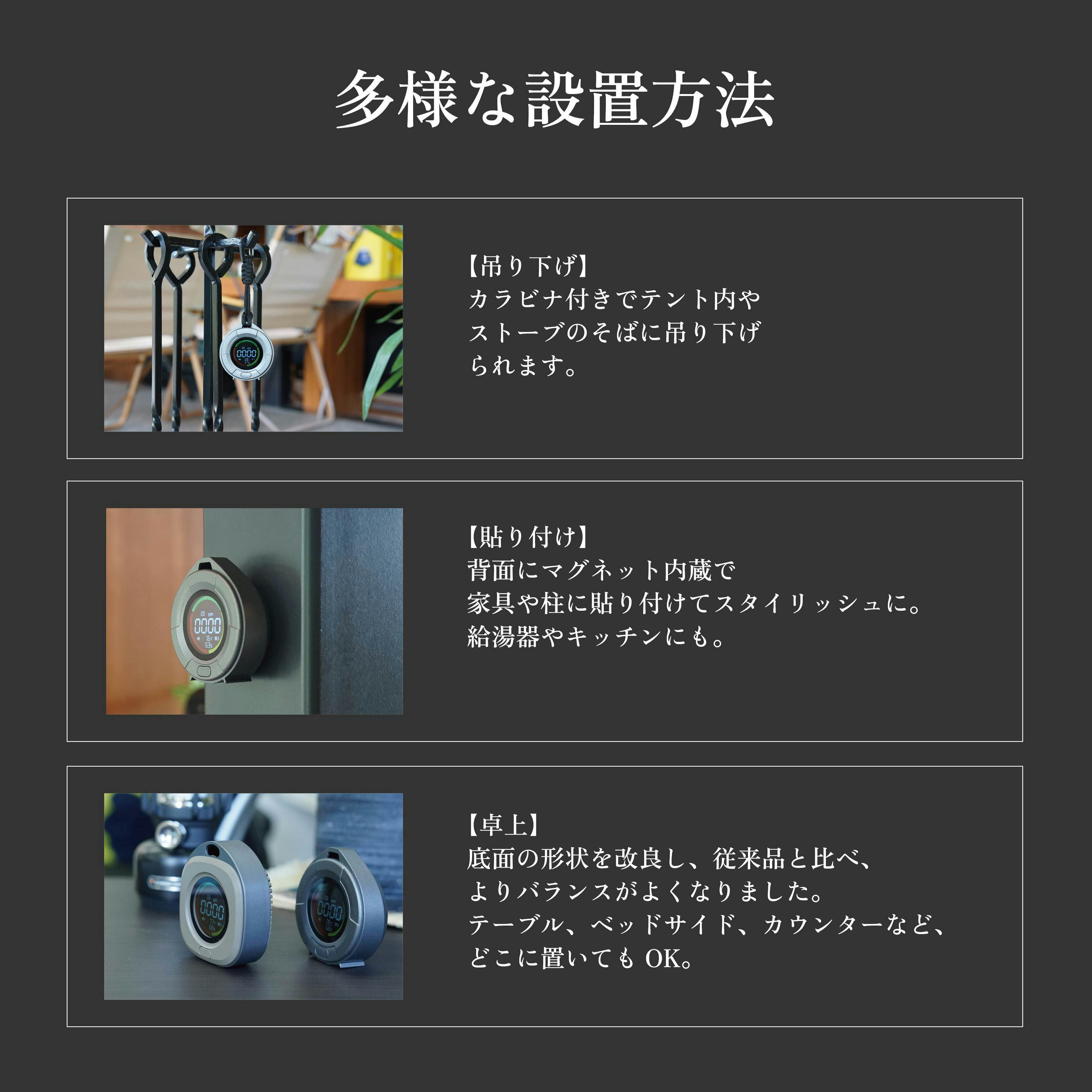 - ✅秋冬キャンプ・車中泊・災害時の必須アイテム!一酸化炭素濃度を数値&アラームでお知らせ。