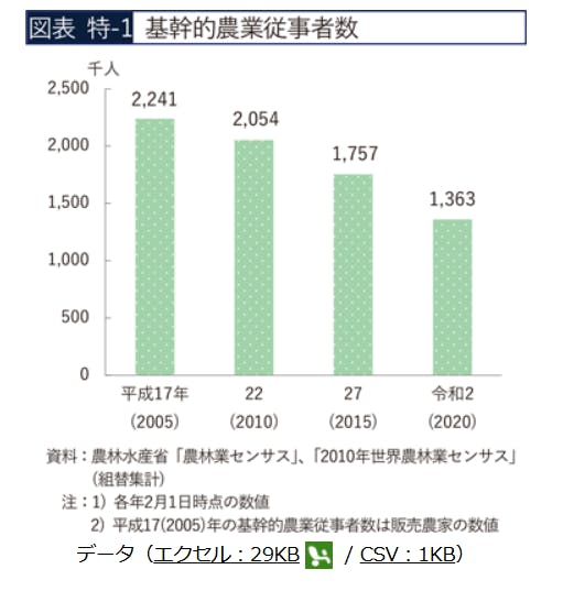 現在、日本の基幹的農業従事者の70%以上が65歳以上の方々で占めており、2050年には基幹的農業従事者が2020年対比で7割減になると見込まれています。