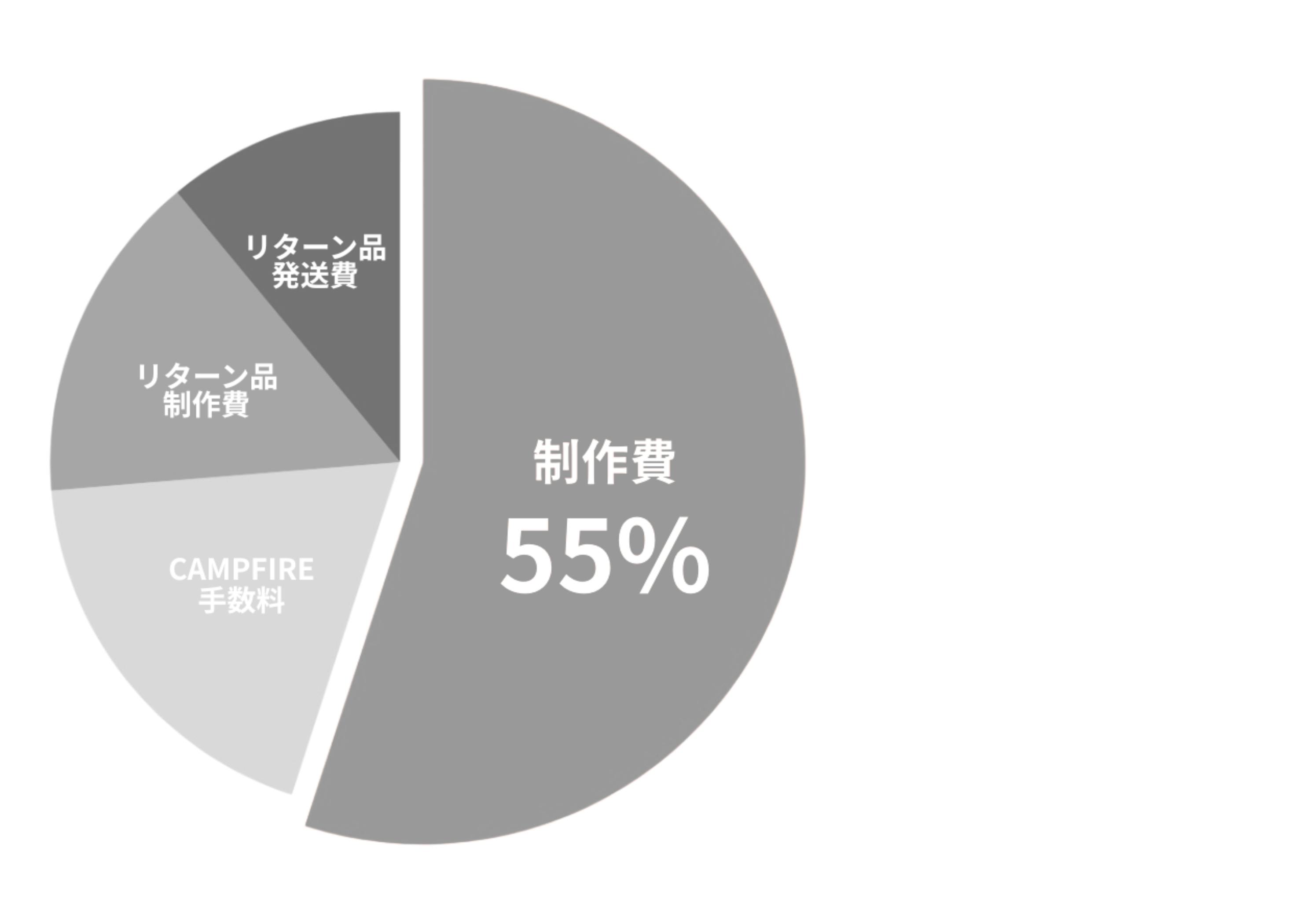総支援金額から諸経費を除いた55%を本人希望ゴール達成時に制作費へと充てさせていただきます。