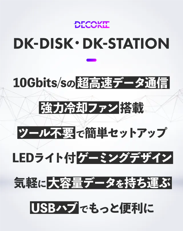 DECOKEE DK-DISKとDK-HUBでデータをスマートに管理。データのことでイライラはもうさせません。