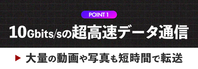 HDDはもちろんのこと、従来のSSDに比べても驚異的な10Gbits/sの転送速度を実現しています。平均な長さの4Kの映画はたったの11秒で転送完了します。