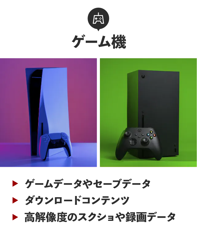 DK-DISKごとに動画・ゲーム・音楽など用途ごとに管理することも可能。SSDにゲームを保存すればロード時間短縮にも。