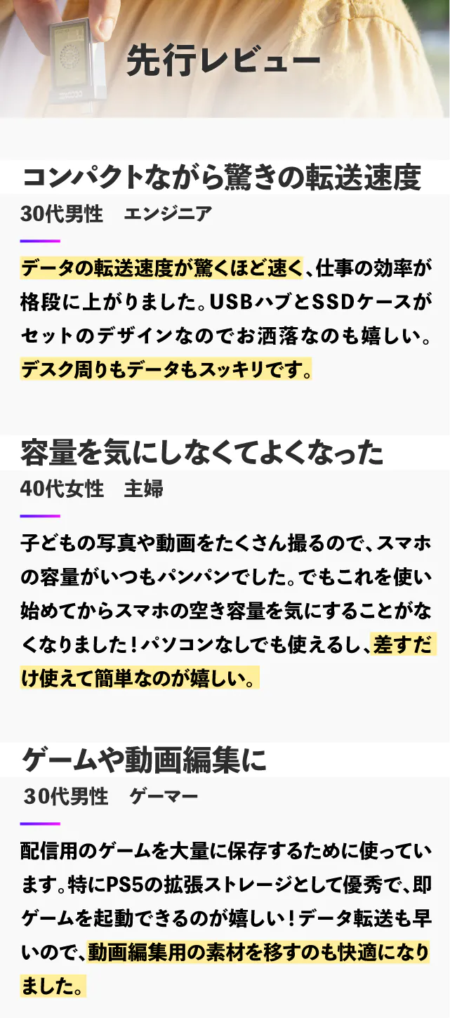 その結果、SSDケースとUSBハブを融合させた画期的なデバイスが誕生。スピード、耐久性、拡張性を兼ね備えたこの製品が、あなたの作業環境をより快適に変えていきます。