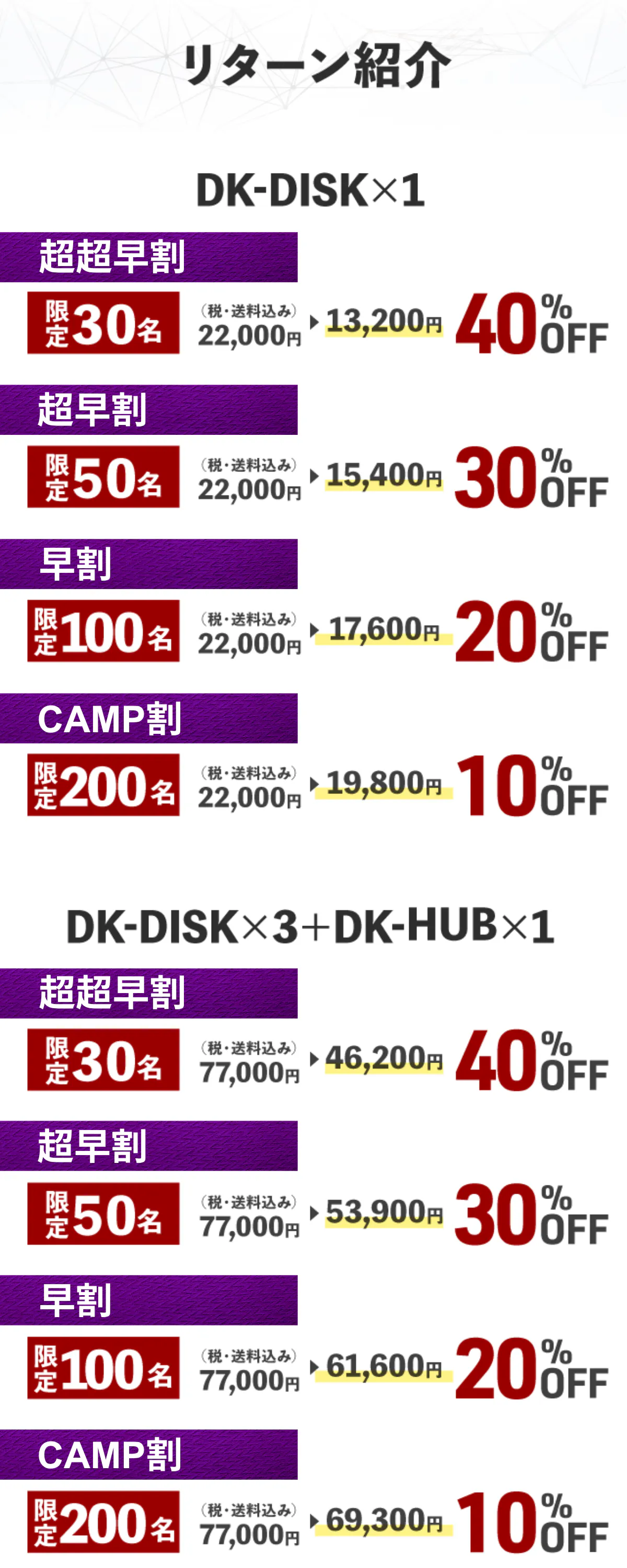 合同会社QReFTYはDK-DISK及びDK-HUBの日本での独占販売権を有する正規代理店です。詳細はページ下部のリスク&チャレンジをご確認ください。