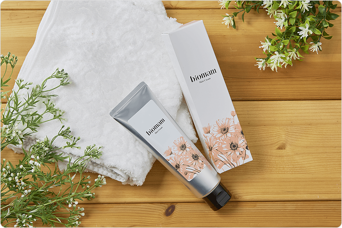 乾燥の原因は「水分が足りない」だけでなく、「水分を守る力が弱っている」ことにもあります。Biomamはこの両面からアプローチし、肌のうるおい環境を土台から整えていきます。
