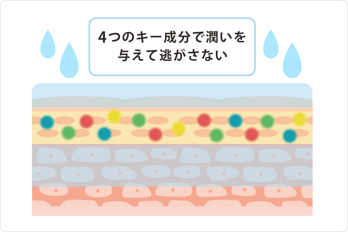 配合したのは、肌の構造と働きに着目した4つのキー成分。