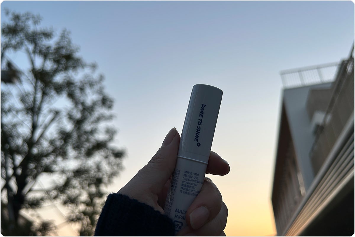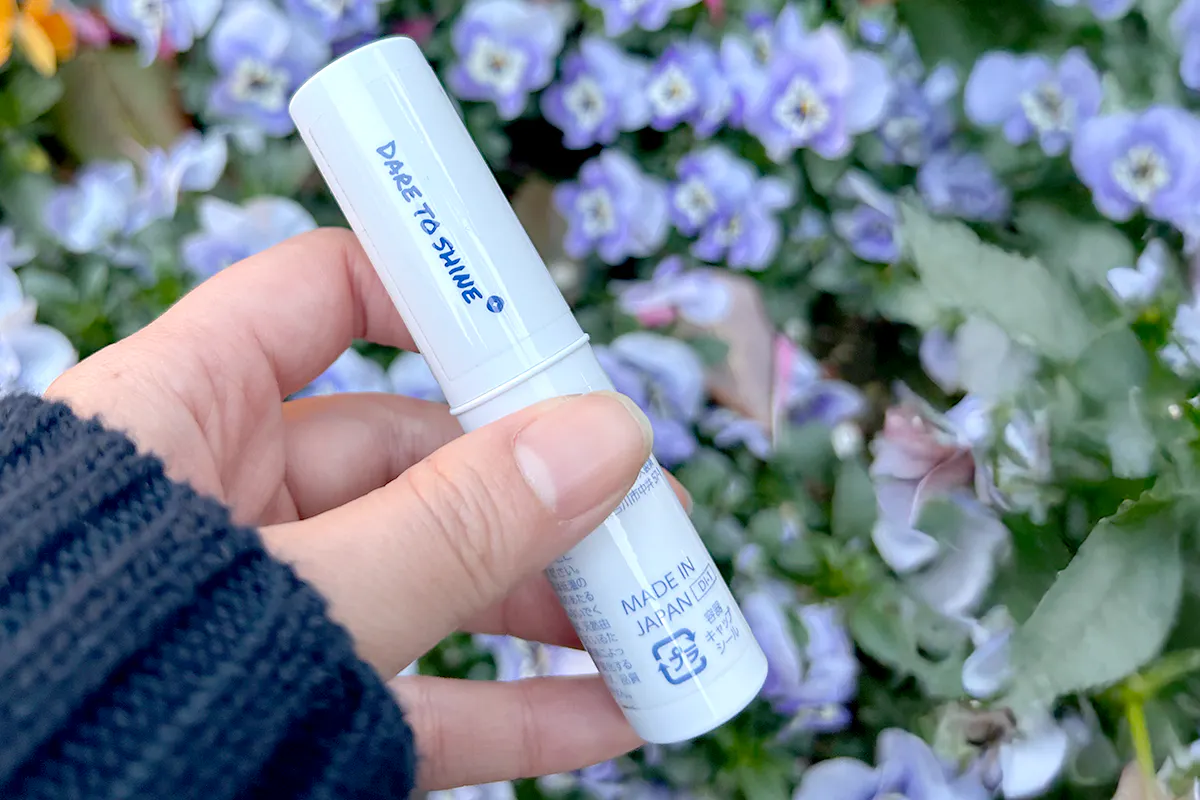 だから忙しい日々の中でも手軽に使えるスティック型バームという形状にし、そこに肌への優しさを追求した国産の天然由来成分をたっぷり配合することを考え、例えば72時間潤いが続く異性化糖や、コラーゲン合成を促進するマスチック樹脂など、確かなエビデンスに基づいた成分を採用し、使い続けることで肌への自信を積み重ねてもらいたい、と考えたのです