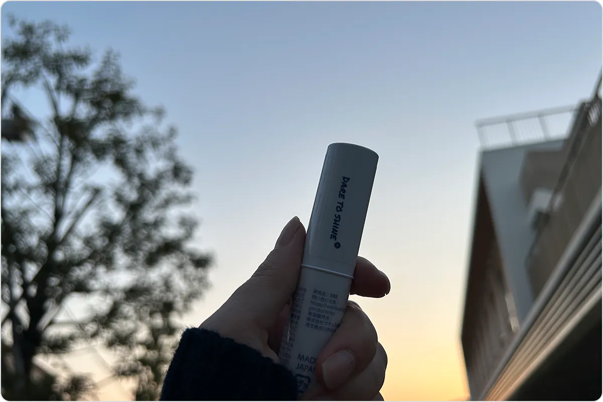 肌の内側には水分、外側には油分を、ひとつのスティックで瞬間的に肌に重ねることができ、理想的な明るいツヤ肌を作り出すことができました!