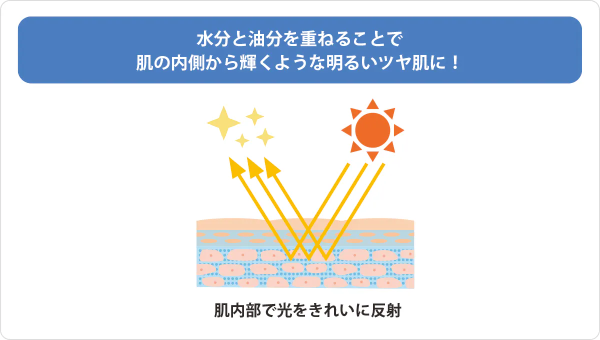 心のスイッチを押して、気持ちをポジティブに切り替えるには、肌の内側からも光があふれて、潤い感もあるような、