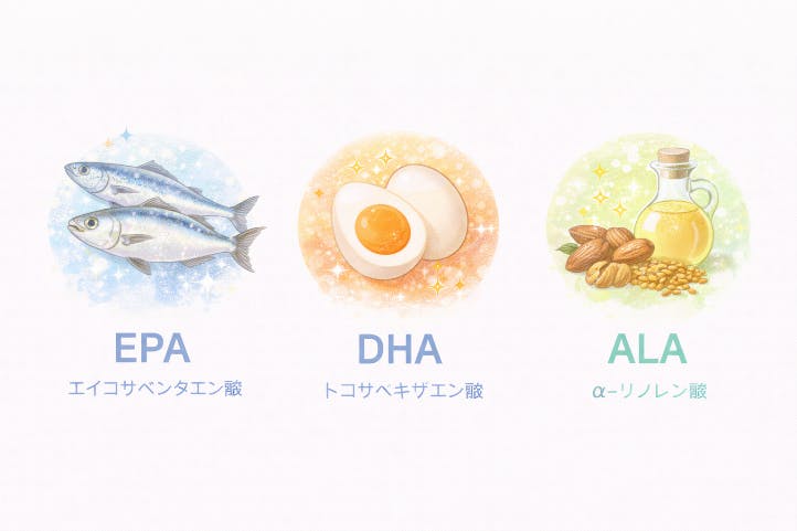 ・ALA(α‐リノレン酸)が代表例で、“うるおい・キメ・柔らかさ・健やかさ”に関わる栄養素としても注目されています。