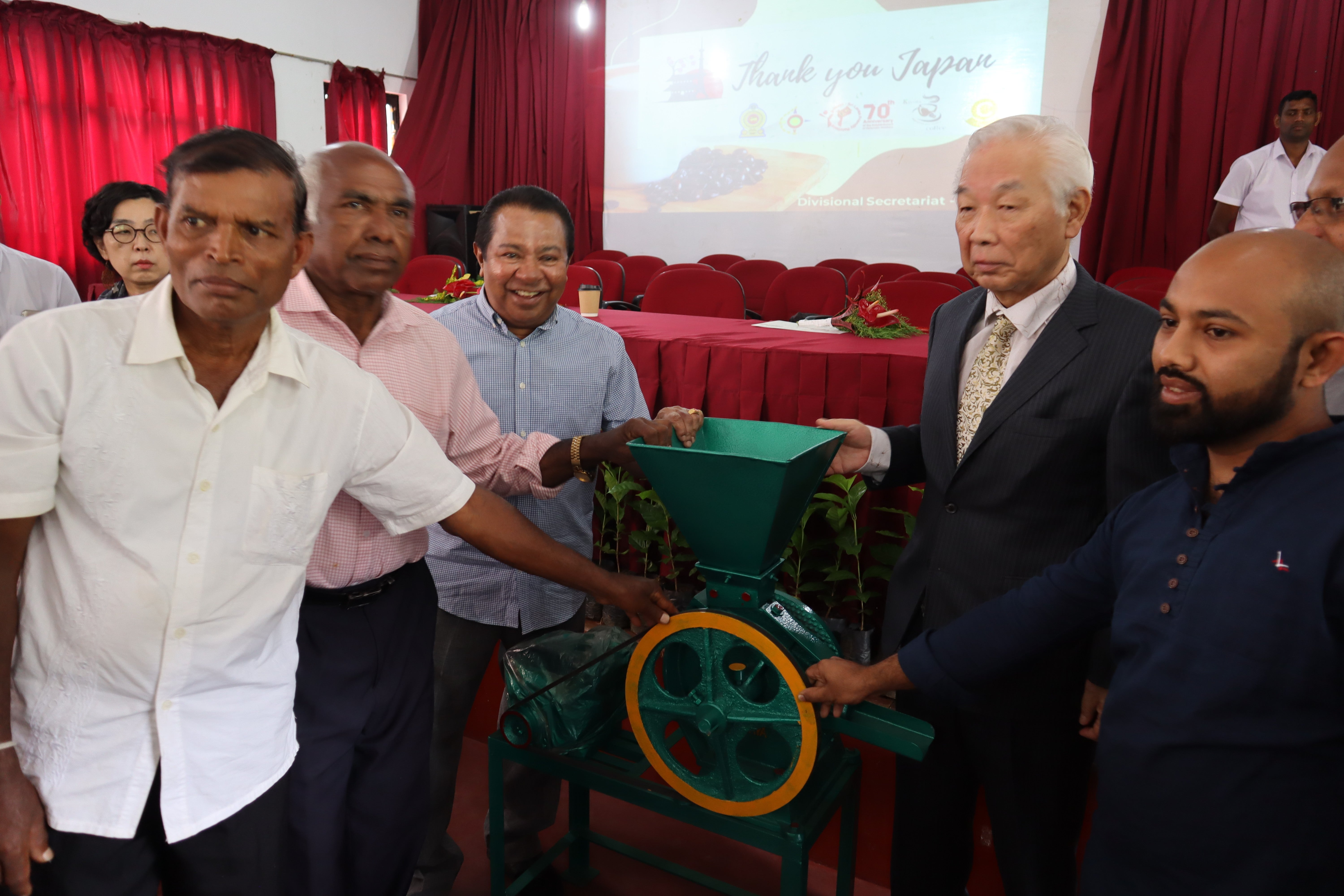 日本からのスリランカ支援は、8kgローストマシン2台の導入と、焙煎方法の技術支援、「粗びきから微細ひき」コーヒーミル2台を提供した。