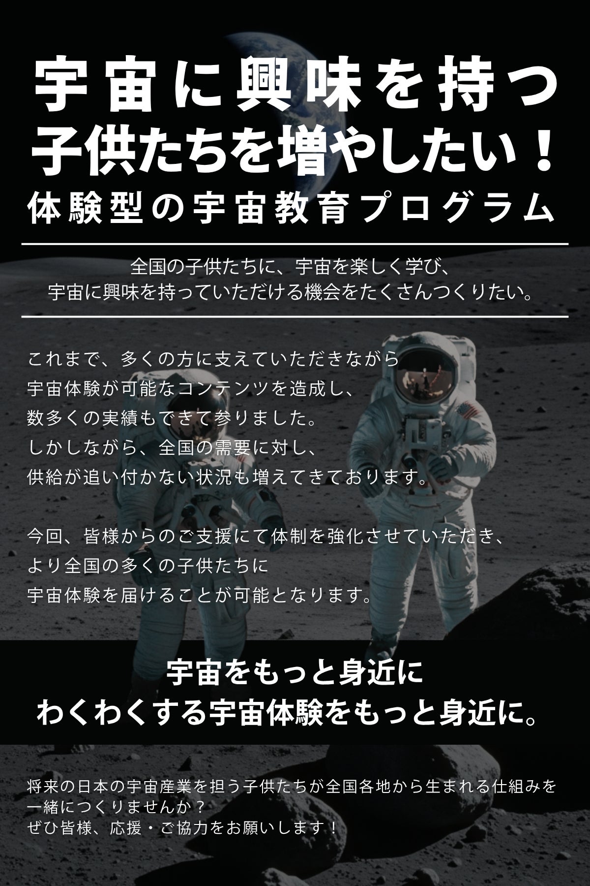 宇宙教育プログラムを多くの方に届けるために、ぜひご支援のほどよろしくお願いいたします。