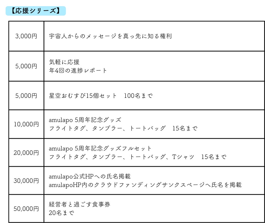 amulapoで販売している「星空おむすび」を、クラファン特別セットとしてご用意しました。