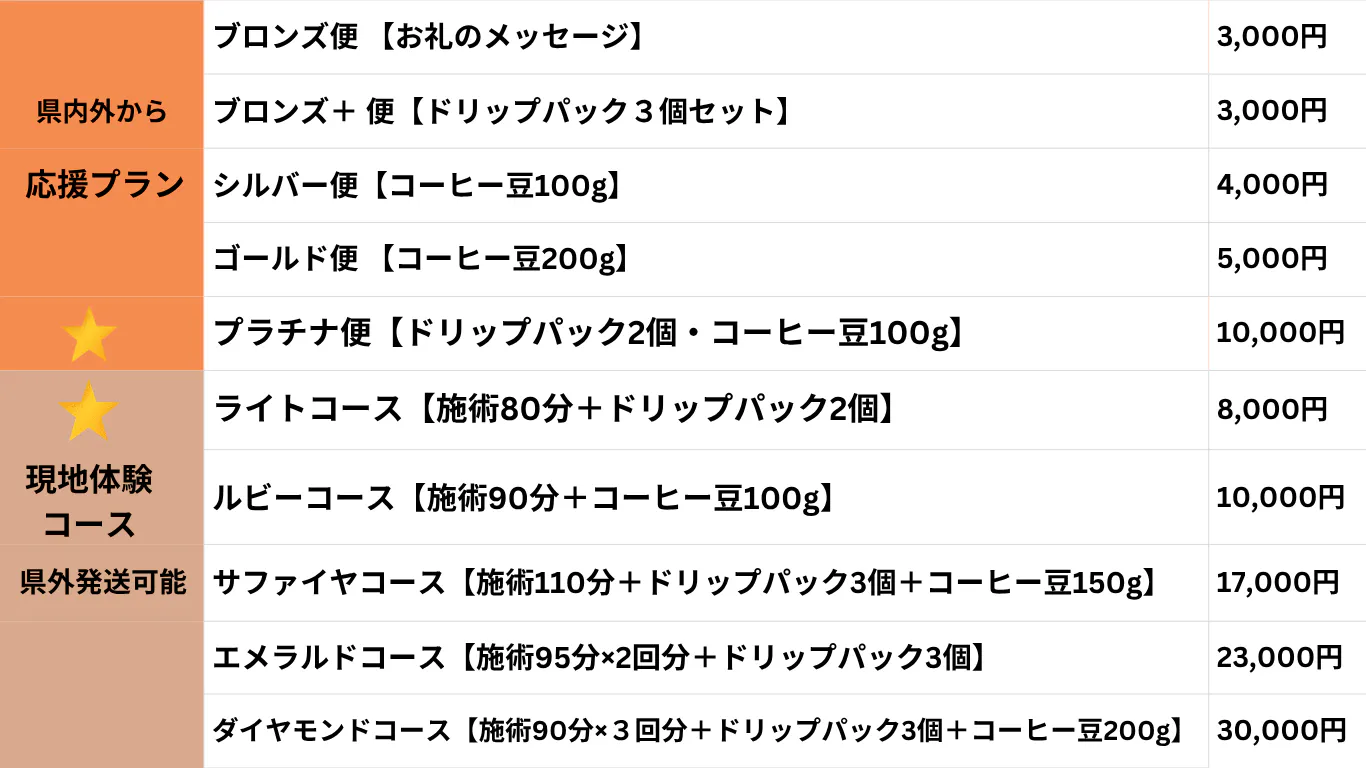 ◎ご予約当日の施術後にリターンのコーヒー豆・ドリップパックなどをお渡しさせていただきます。