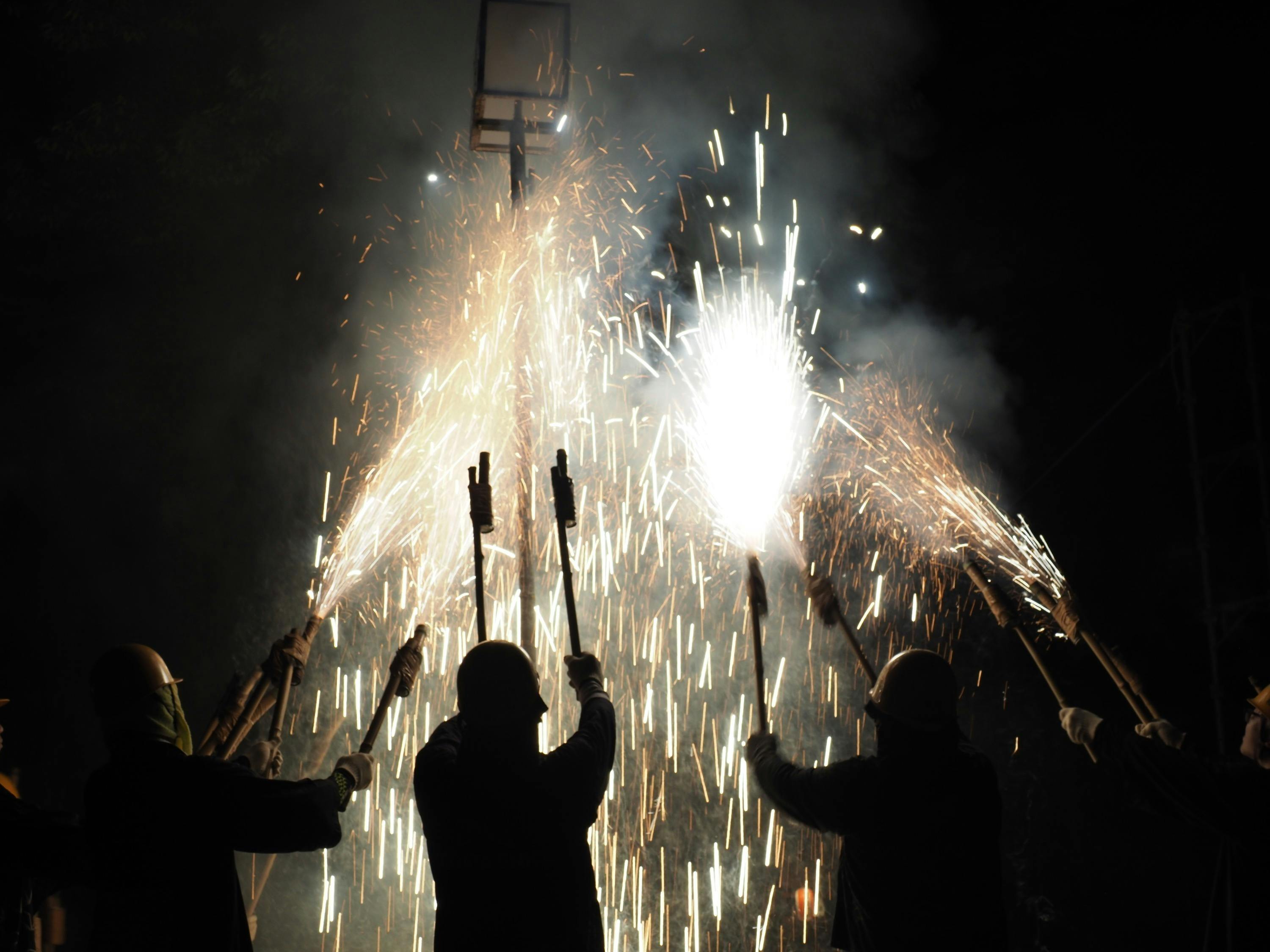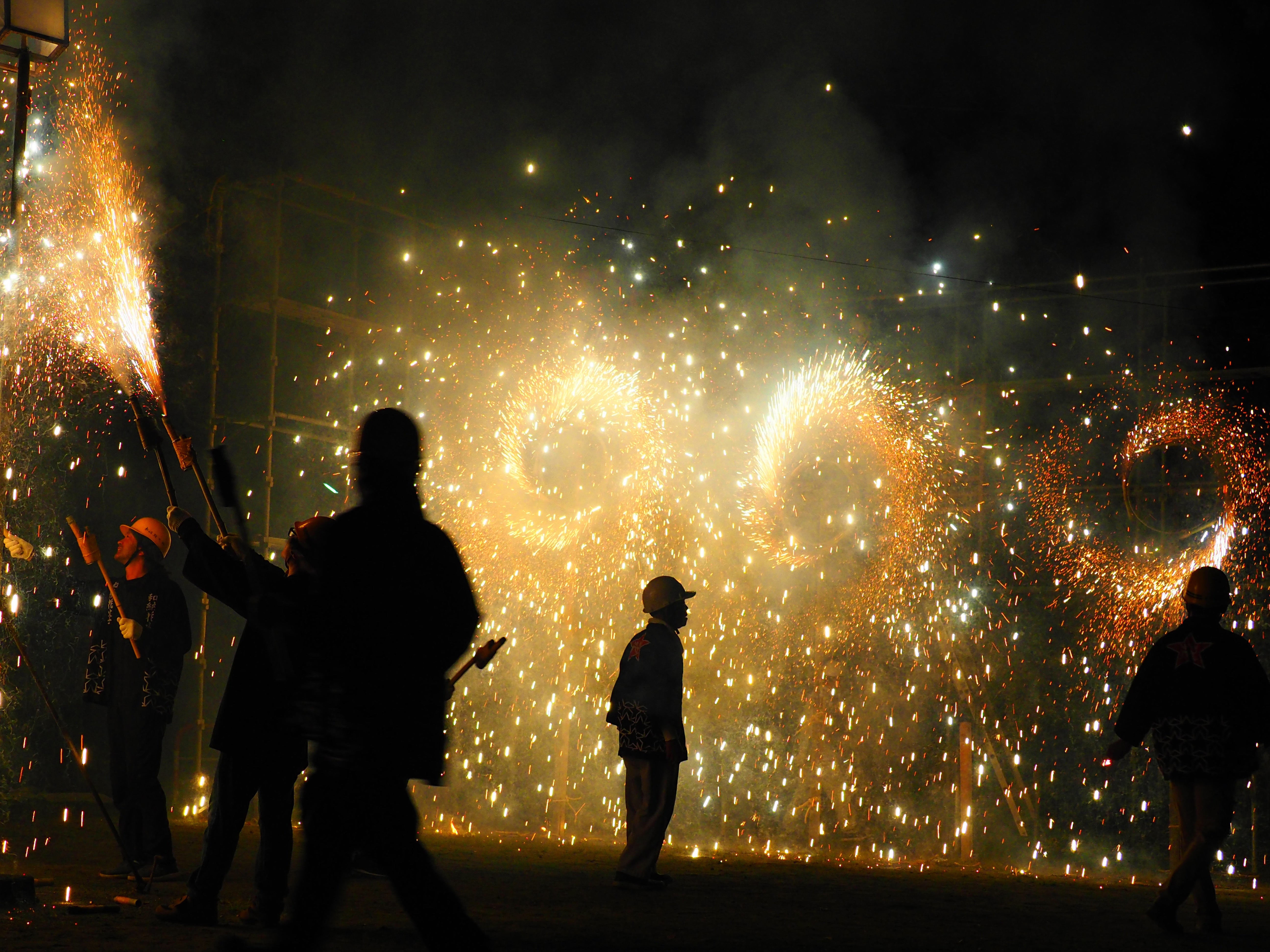 仕掛花火が豪快に火を噴く