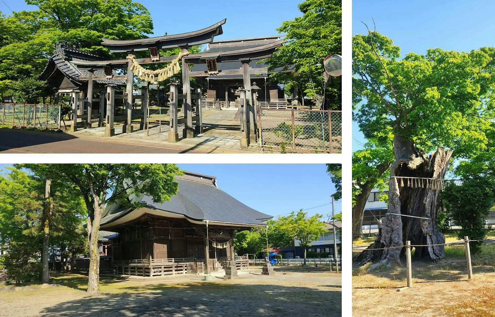 小さな神社としては珍しい三ツ鳥居を配した構えは地域の人たちから愛されています。