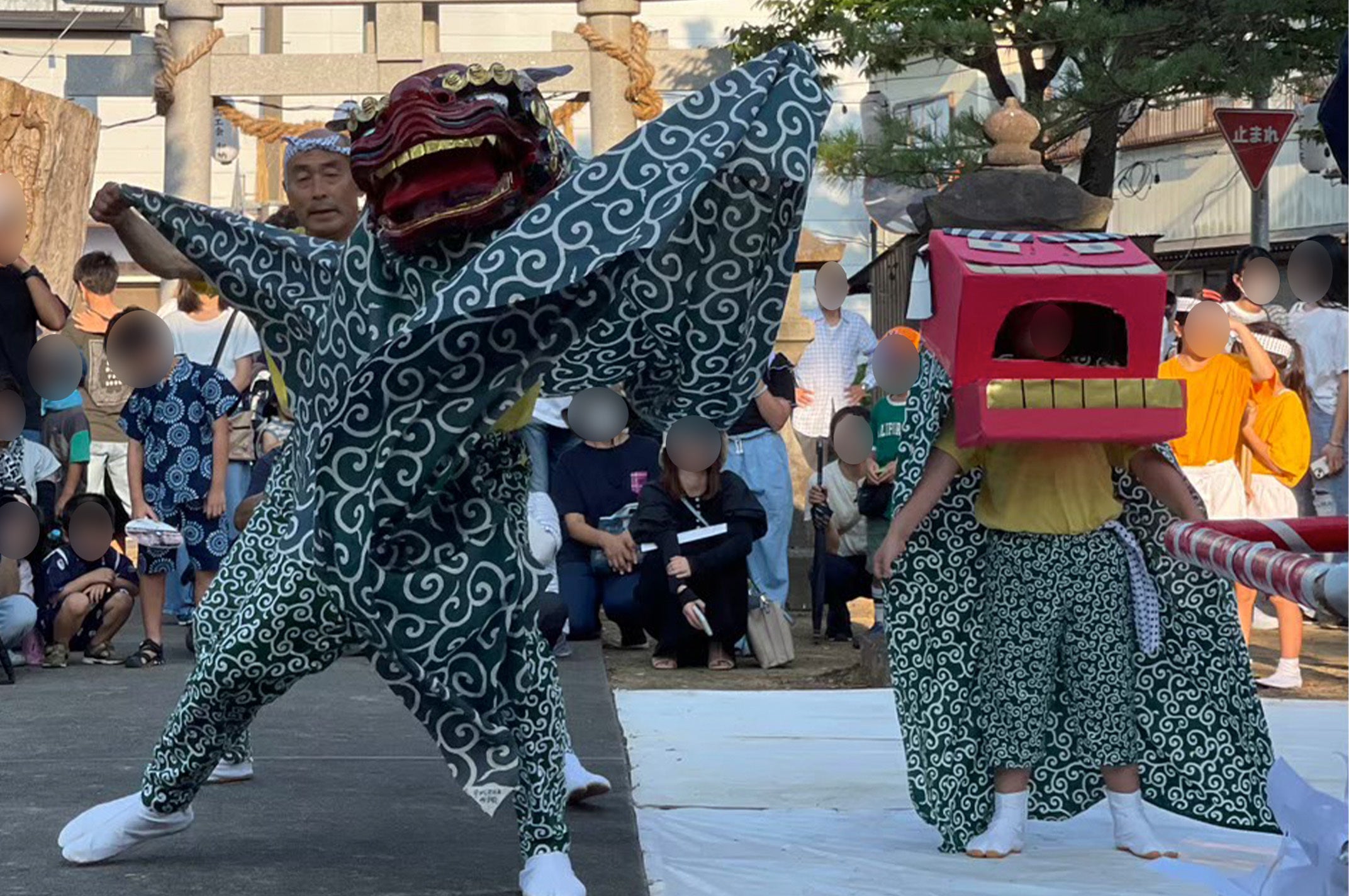 手作りの獅子で神楽と舞う少年が大人気!