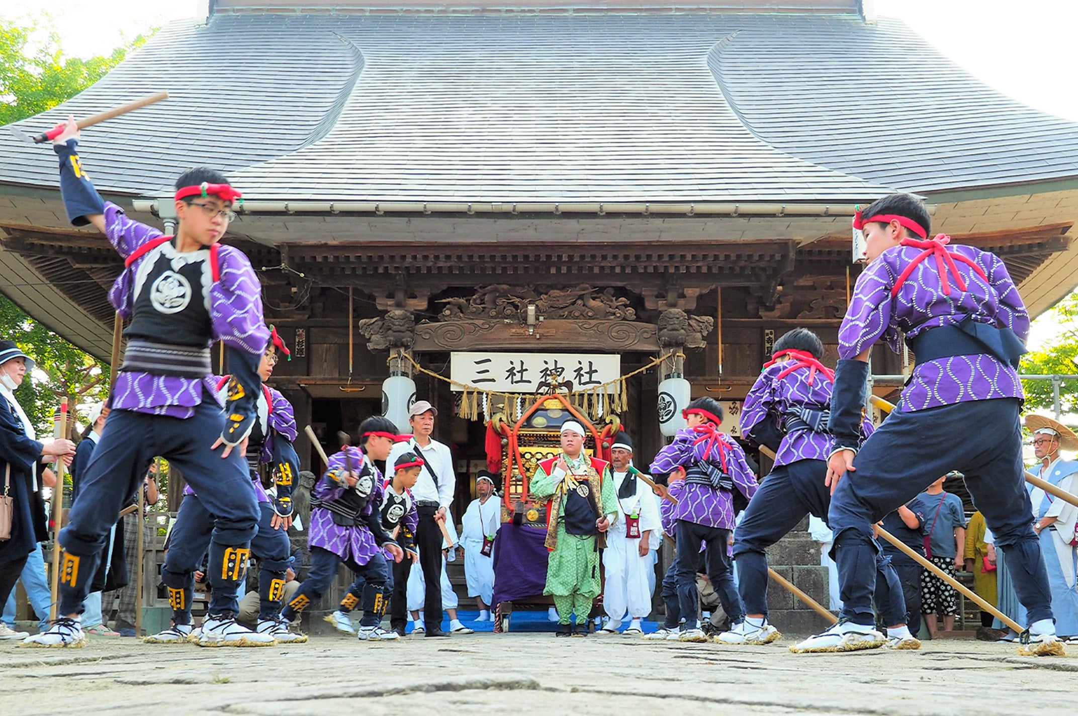 神輿が神社を渡り歩く際、その先頭に立って露払い役を務めています。演武で行われる武術により、道中の邪気を払う役目があります。