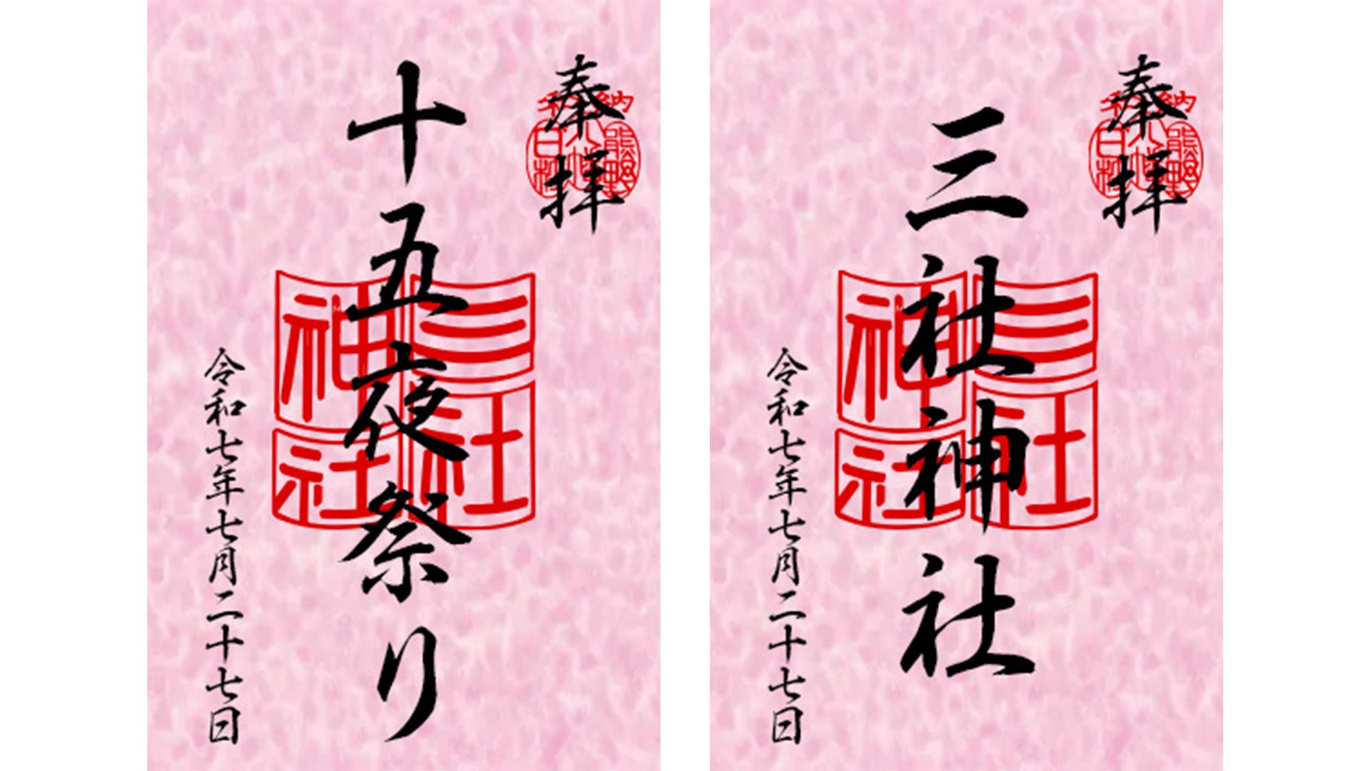 〇御朱印用奉書紙(100×150)に御朱印を押印し「十五夜祭り」と墨書き 金色紙または落水紙(桃色)