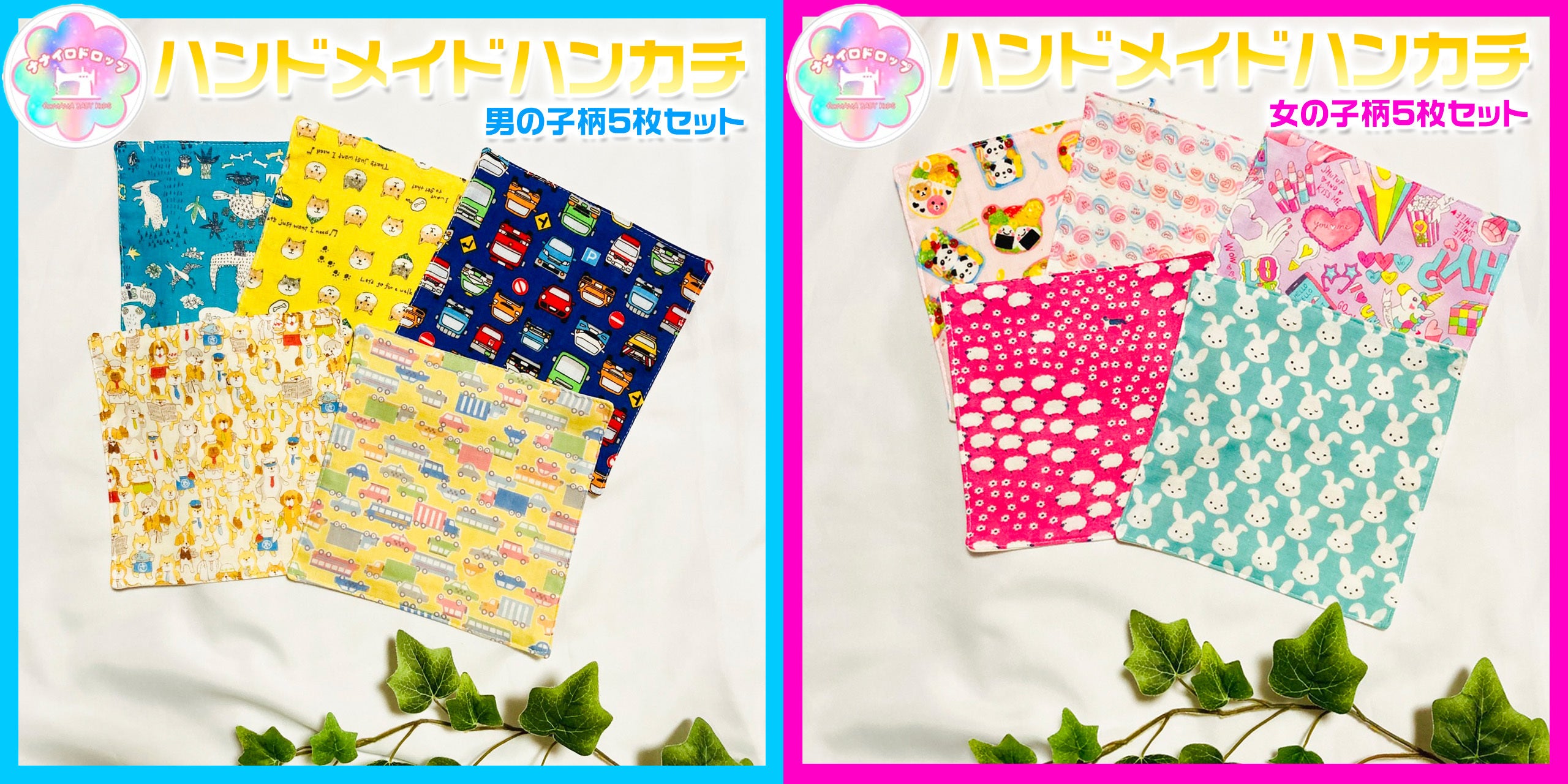 2025/06/16 17:13地元で活動している、ママと子どもたちのためのハンドメイド♡ワークショップ「ナナイロドロップ」様よりハンドメイドハンカチ5枚セットをご提供いただきました!男の子向けと女の子向けの柄のセットとなります。子どもたちが使いやすいサイズで、5柄あるので日替わりで楽しめます。(裏は無地となります。また写真は一例で柄はランダムとなります。)クラウドファンディングで返礼品をお願いしたところ、少しでも力になれればと快くお受けいただきました。地元に愛される祭り。このハンカチを使った子どもたちが大人になって、さらにこの祭りを盛り上げてくれるように願っています。 もっと見る