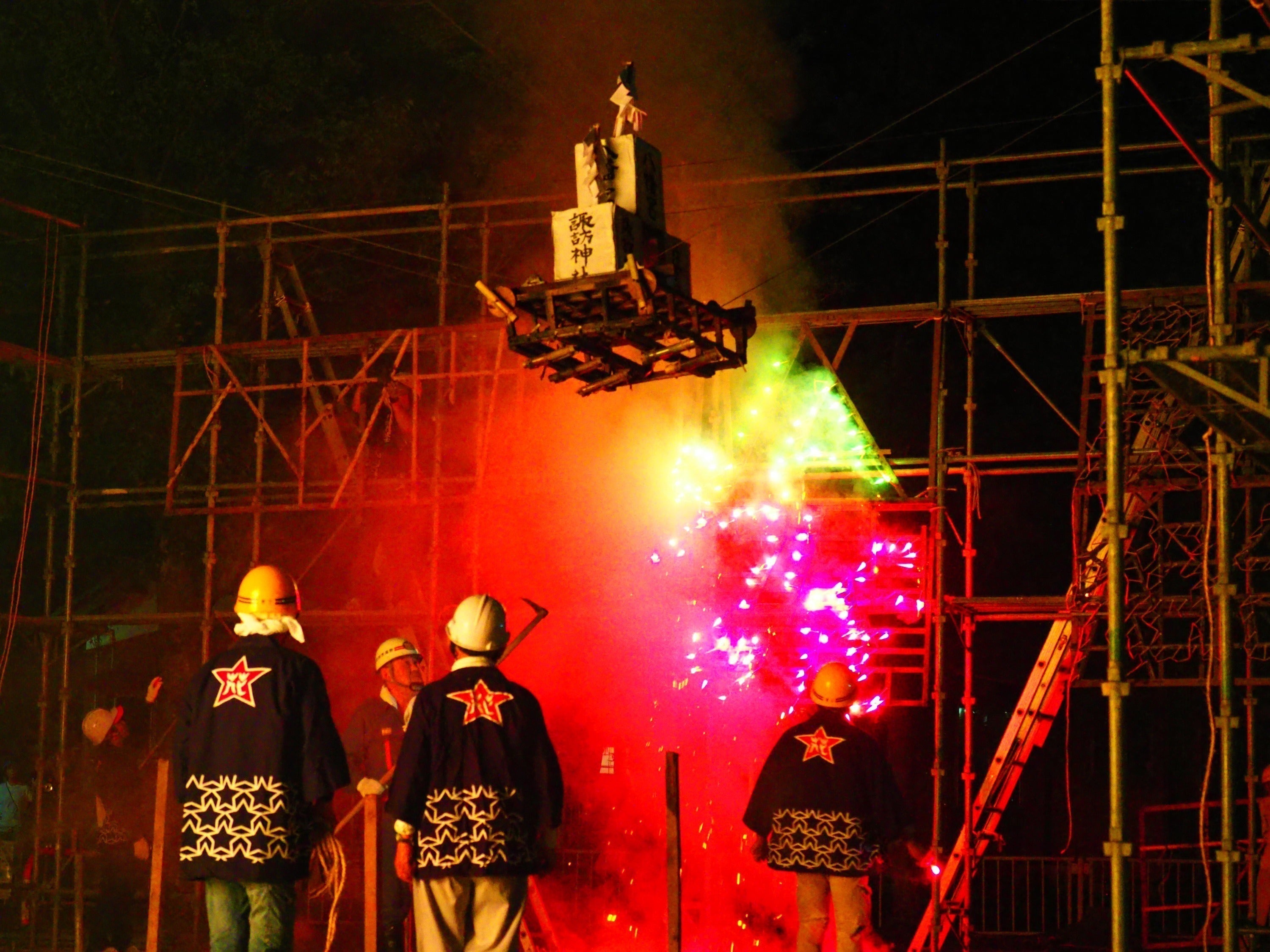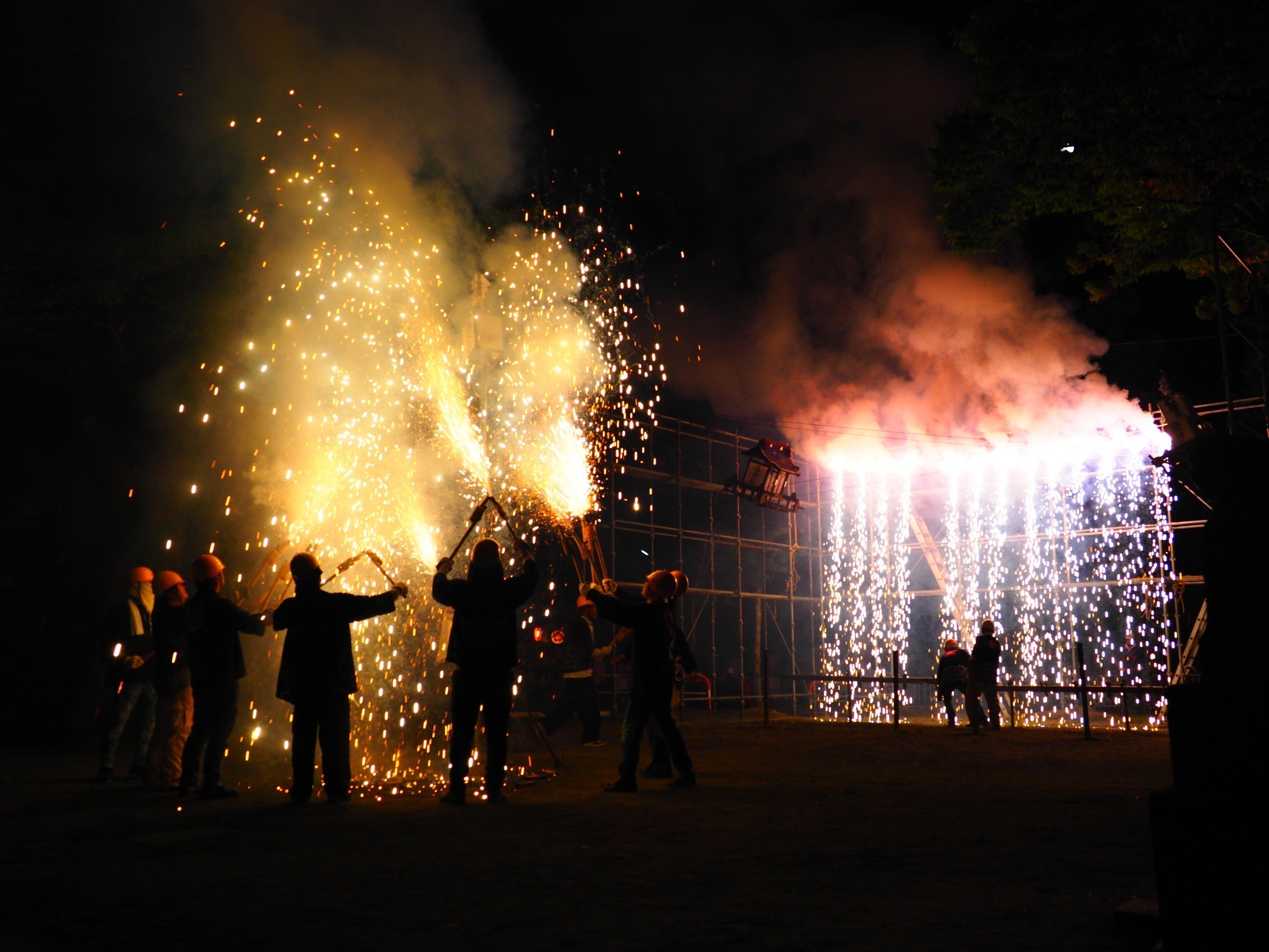 仕掛花火が豪快に火を噴く