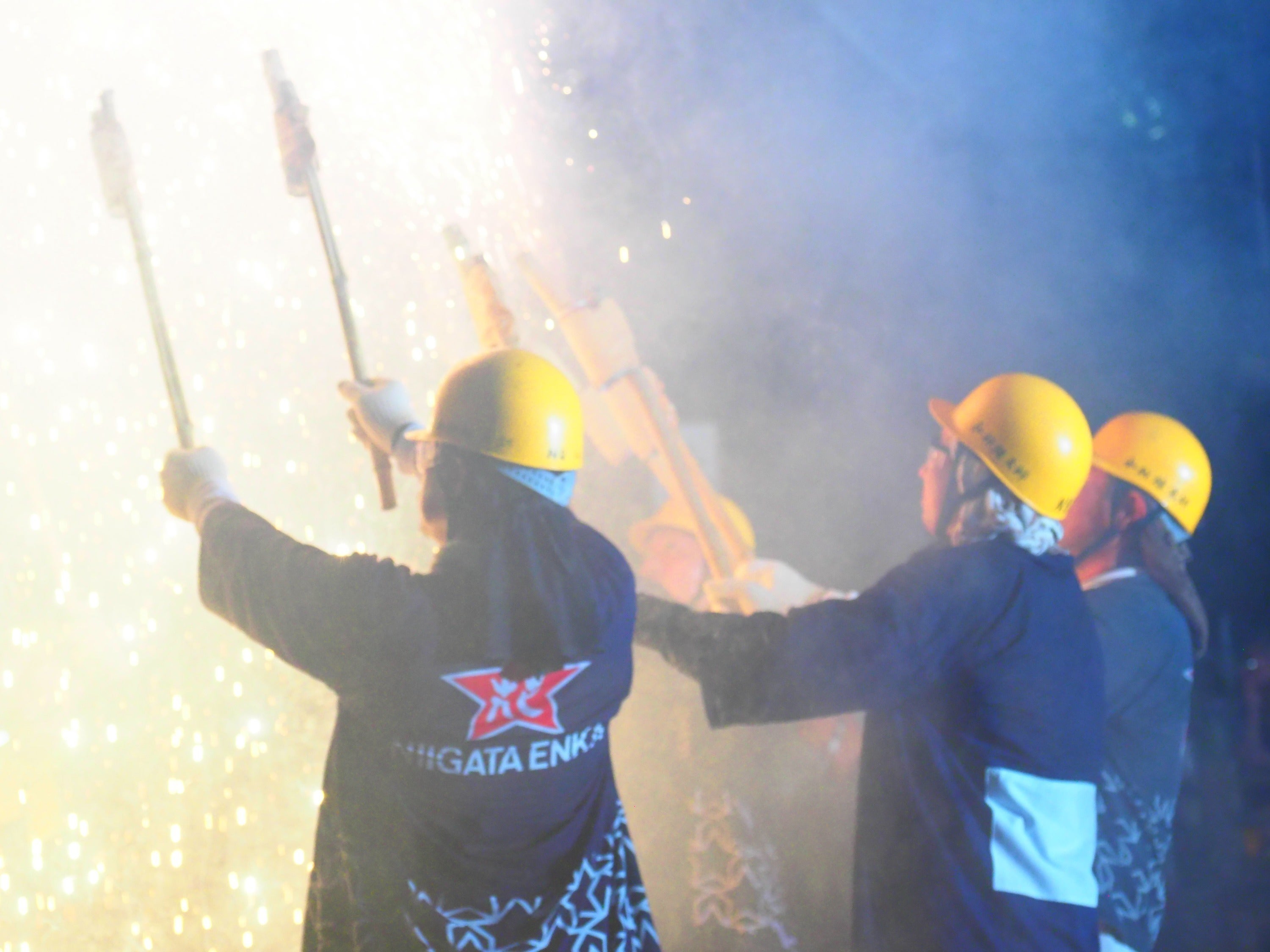 手持ちの草花火以外にも滝のように火の粉が流れ落ちる仕掛け花火や、火花を噴き出しながら綱を渡る花火神輿なども一手に手掛けています。