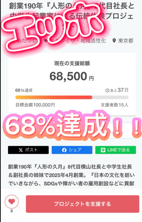皆さまのおかげで68%まで達成中です