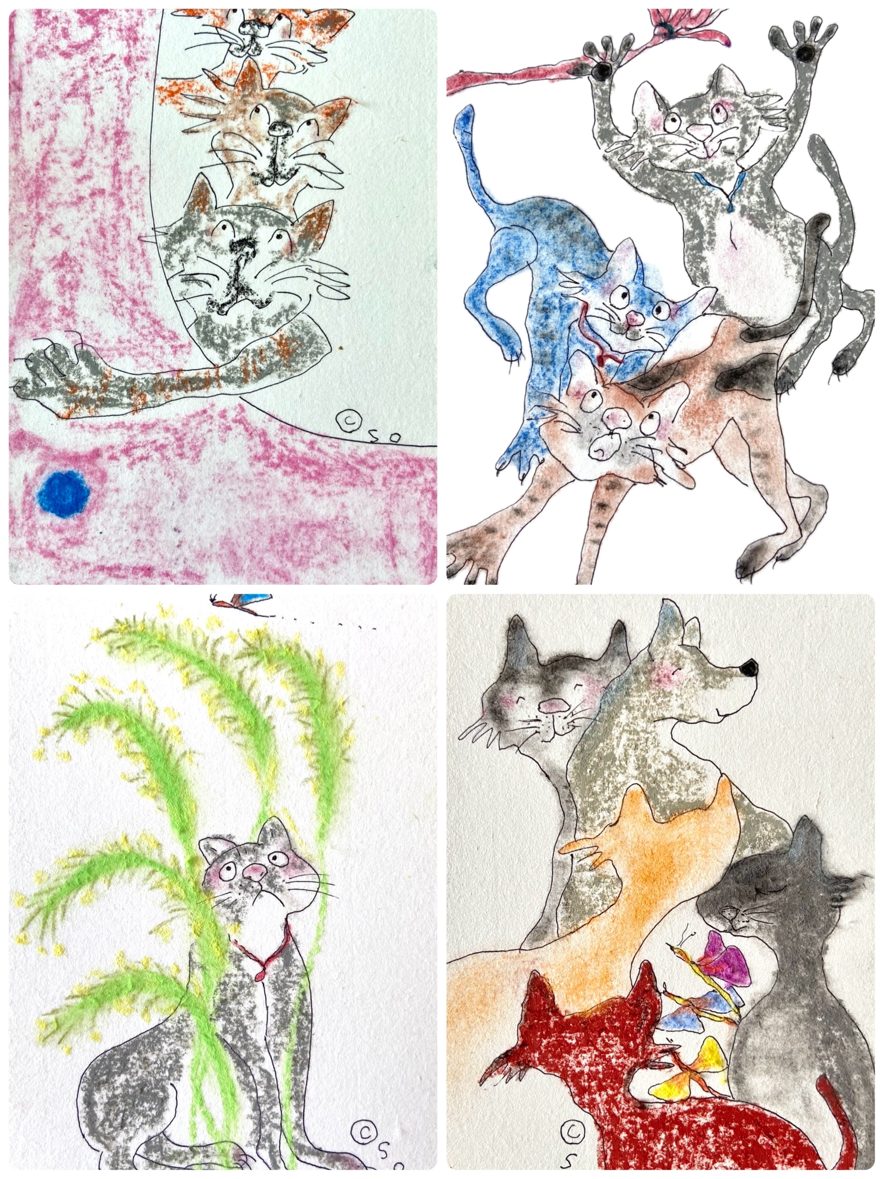 5月4日、私の庭で生まれた野良猫の子猫が、物置の下で育っていることに気づきました。発見したときは体重がまだ400グラムにも満たず、目や鼻も塞がっている状態で、とても心配な状況でした。そんな中、愛護団体「アニマルフレンド」さんがすぐに受け入れてくださり、動物病院へ連れて行ってくれたうえに、24時間体制でお世話をしてくださいました。そのおかげで、当時は「このまま元気に育つのだろうか」と心配していた子猫も、今では立派に成長してくれました。私たちはその子を「ルーシー」と名付けています。ルーシーを通じて、アニマルフレンドさんの献身的な活動を間近で見せていただき、深く感動しました。母が長年取り組みたかったイラストを通じた支援活動とも重なり、「循環支援」という形で少しでも社会を変える力につながればと感じています。このご縁から、アニマルフレンドさんが母のイラスト150枚を購入してくださり、譲渡会や活動の御礼品として活用いただけることになりました。本当にありがたく、嬉しいことです。ルーシーのおかげで愛護団体さんとのつながりが生まれ、母もまた猫をモチーフにした作品をたくさん描くようになりました。