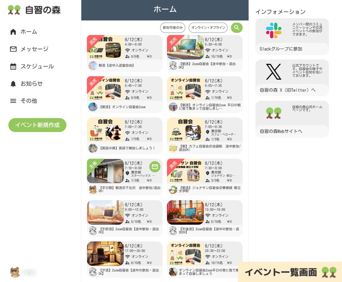 そんな経験から、「週末に気軽に自習仲間と出会える場所があったらいいのに」と思い、始めたのが「自習の森」というコミュニティです。