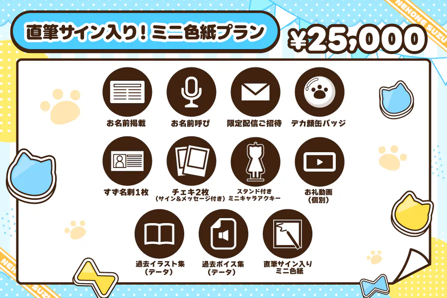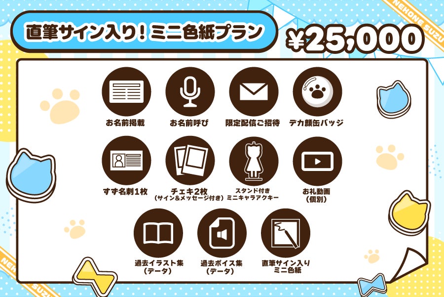 | ¥25,000 | 直筆サイン入り!ミニ色紙プラン | 15 |