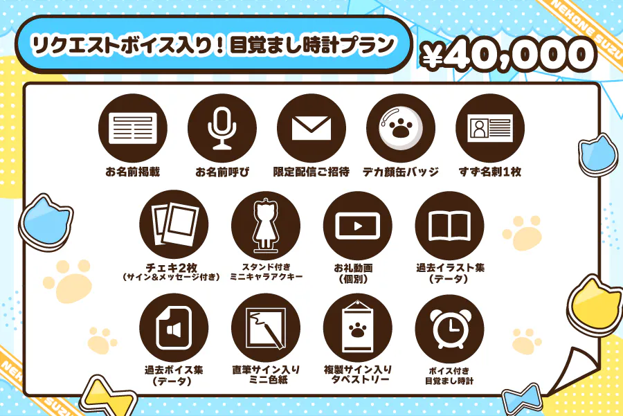 | ¥40,000 | リクエストボイス入り!目覚まし時計プラン | 10 |