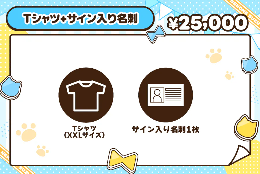 | ¥25,000 | 【追加】Tシャツ+サイン入り名刺 | - |