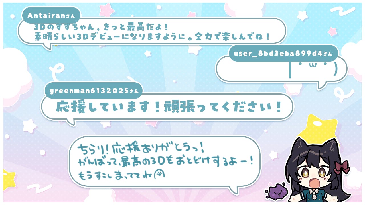 ご支援、コメントありがとうございます!!みんなが3Dを楽しみにしてくれていること、とっても嬉しいです!!絶対すてきな3Dをつくるぞー!!引き続きよろしくお願いします!