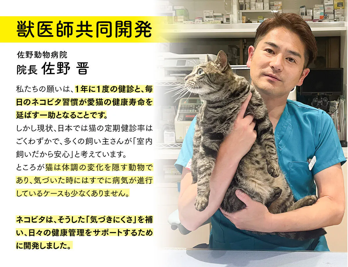 【猫の病気を予防し、健康寿命を延ばす】を実現したいと強く思っています。